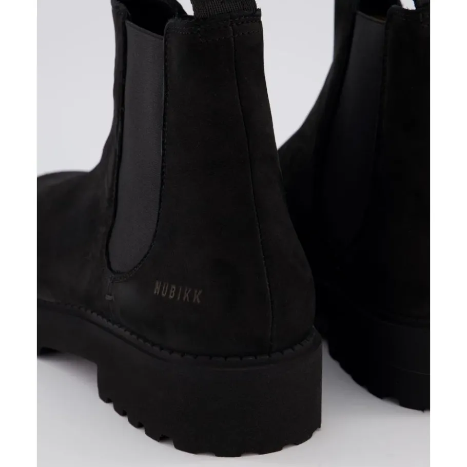 De Nubikk Logan Rai Boot combineert de klassieke Chelsea-stijl met een stevige, lichtgewicht rubberen zool voor dagelijks gebruik in de stad. Modelcode 21042600-10N bevestigt dat dit het Logan Rai-ontwerp is. Belangrijkste kenmerken: Zwart | Zwart | Nubuck | Lichtgewicht rubberen zool | Gripvast profiel | Uitneembaar voetbed | Gemakkelijk aan en uit te trekken met elastische inzetstukken en treklus | Elastische zijpanelen | Trekker aan de hiel | Ronde neus | Stevige, gekartelde zoolrand | Afmetingen en pasvorm: Schachthoogte: ca. 14–14,5 cm | Zool vooraan dikte: ca. 3–3,5 cm | Hakhoogte: ca. 4 cm | Normale pasvorm (valt normaal) – bestel je gebruikelijke maat | Samenstelling en verzorging: Bovenwerk: Nubuck | Voering: Leer | Zool: Rubber | Voetbed: Uitneembare leren binnenzool | Behandel nubuck met een speciale beschermende spray voor het dragen. Reinig met een suède-/nubuckborstel en reinig vlekken; vermijd weken. Laat natuurlijk drogen. Niet in de wasmachine.