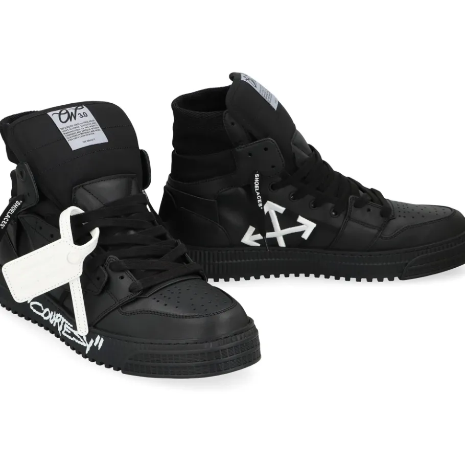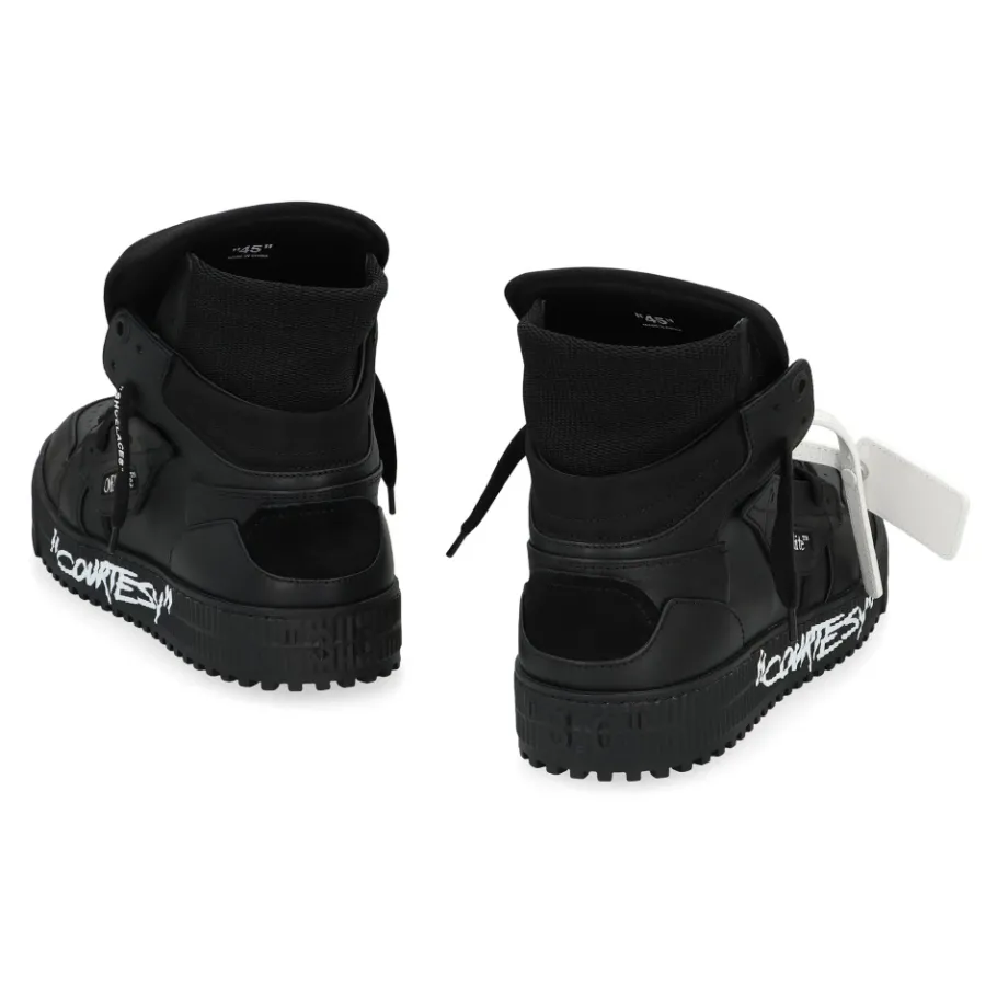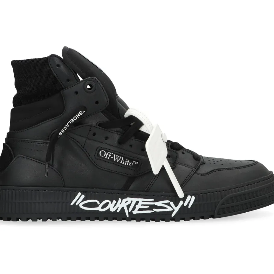 Off-White 3.0 Off Court ‘Courtesy’ Sneakers zijn basketbal-geïnspireerde high-top sneakers die leren panelen combineren met een robuuste rubberen zool voor dagelijks gebruik. Ze vallen op door de traditionele logo-opdruk aan de zijkant en de iconische logo tag. Belangrijkste kenmerken: Zwart | Off white | Leer | Stevige rubberen zool | Vetersluiting | High-top silhouet | Ronde neus | Traditionele logo-opdruk aan de zijkant | Iconische logo tag | Afmetingen & pasvorm: Maatomzetting: IT | Samenstelling & verzorging: Bovenkant: 60% Leer, 40% Polyester | Voering: 79% Leer, 21% Polyester | Zool: 100% Rubber | Raadpleeg de instructies van de fabrikant.