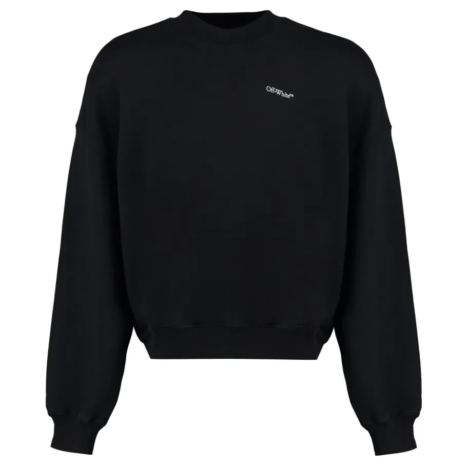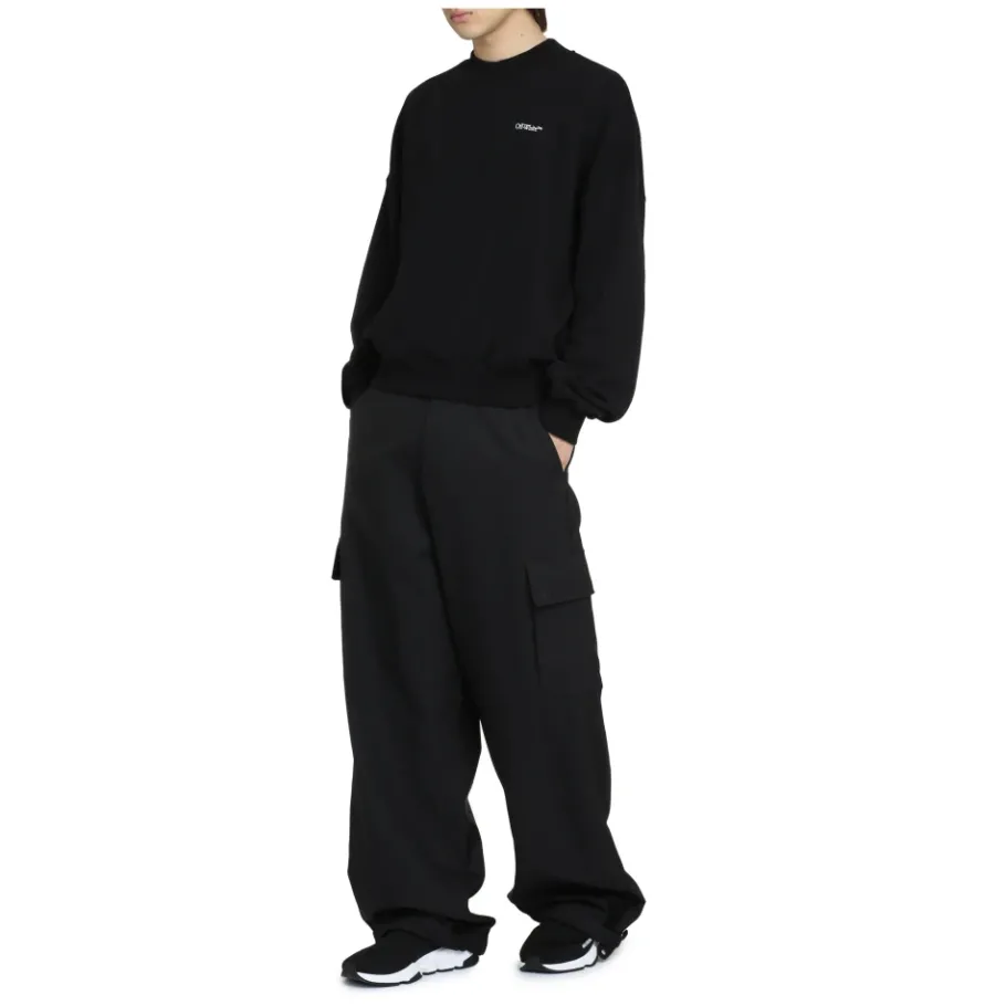 Deze Off-White katoenen sweatshirt met ronde hals combineert een strak silhouet met een opvallende maxi-print op de rug voor een unieke casual look. Belangrijkste kenmerken: Zwart | Katoen | Geribbelde boorden | Ronde hals | Maxi-print op de rug | Gedrukt logo op de voorkant | Samenstelling & onderhoud: 100% katoen | Machinewas op 30°C.