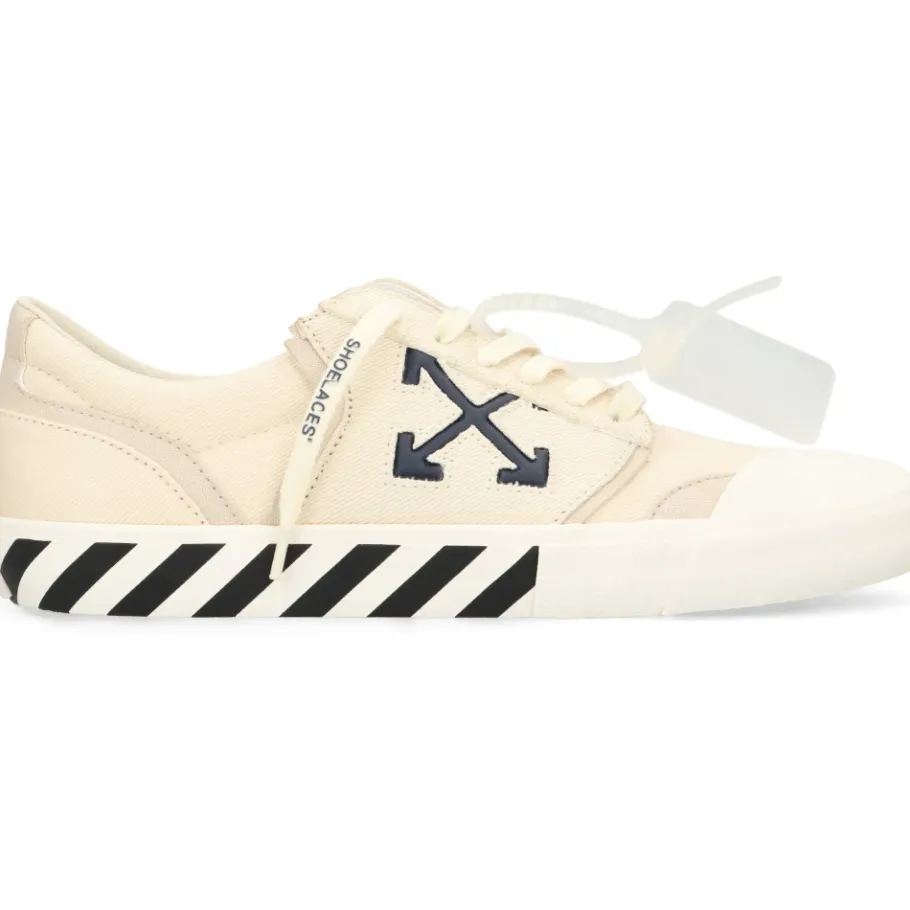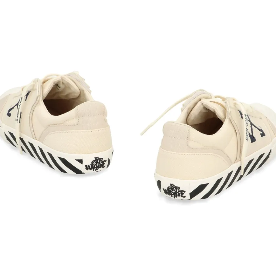 De Off-White New Vulcanized Sneakers combineren een bovenwerk van lichte katoen met een gevulkaniseerde rubberen zool, wat resulteert in een eigentijdse low-top stijl voor casual, dagelijks gebruik. Belangrijkste kenmerken: Off white | Wit | Katoen | Low-top silhouet | Lichtgewicht bovenwerk van stof | Diagonaal streepmotief op de zool | Opvallend zijlogo | Gevulkaniseerde rubberen zool | Samenstelling & onderhoud: 100% Katoen | 100% Rubber | Raadpleeg de instructies van de fabrikant.