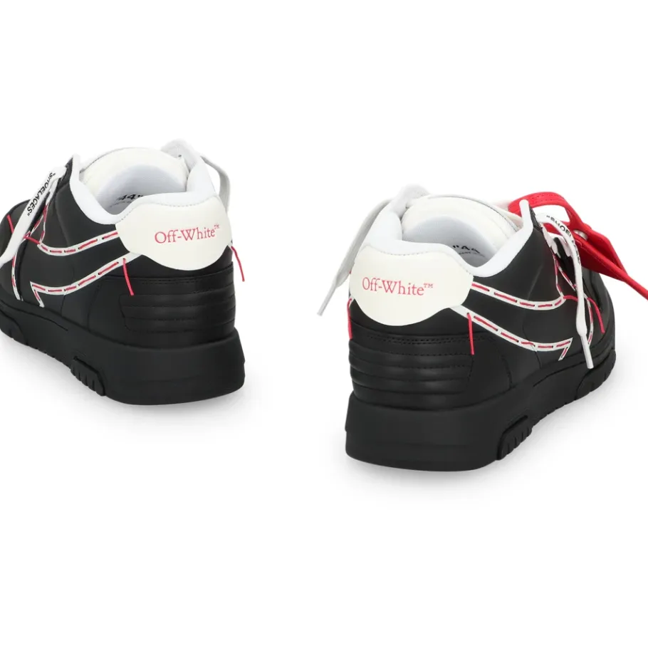De Off-White Out Of Office Sneakers combineren glad kalfsleer met kenmerkende Arrow-details en contrasterende rode stiksels voor een veelzijdige, alledaagse sneaker. Belangrijkste kenmerken: Zwart | Gebroken wit | Kalfsleer | Vetersluiting | Rubberen zool | Contrasterende rode stiksels | Arrow-details aan de zijkant | Logo detail op de achterkant | Glad leren bovenwerk | Afmetingen & pasvorm: Italiaanse maatvoering | Samenstelling & verzorging: 100% kalf | 100% polyester | Raadpleeg de instructies van de fabrikant