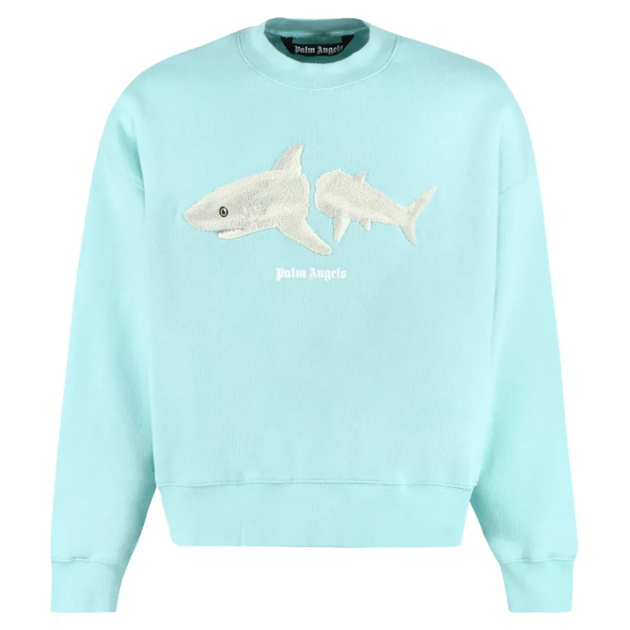 De Palm Angels geborduurde katoenen sweater heeft een opvallende witte haaienborduring aan de voorkant voor een onderscheidende streetwear-look. De sweater is gemaakt van katoen met een geribbelde halslijn, manchetten en zoom voor dagelijks comfort. Belangrijkste kenmerken: Blauw | Lichtblauw | Katoen | Witte haaienborduring aan de voorkant | Geribbelde halslijn, manchetten en zoom | Samenstelling & onderhoud: 100% katoen | 97% katoen | 3% elastaan | 45% wol | 45% acryl | 5% viscose | 5% polyamide | Raadpleeg de instructies van de fabrikant