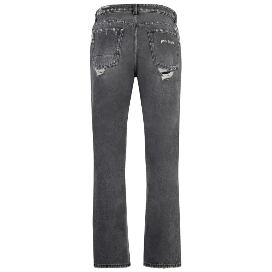 De Palm Angels Straight leg jeans combineren een ontspannen, rechte silhouet met distressed details en hardware met logo-gravering voor dagelijks gebruik. Ontworpen voor casual veelzijdigheid, ze passen gemakkelijk bij T-shirts of gelaagde bovenkleding. Belangrijkste kenmerken: Grijs | Katoen | 5 zakken | Riemlussen in de taille | Knoopsluiting | Metalen knopen en klinknagels met gegraveerd logo | Distressed details | Geborduurd logo op de achterkant | Rechte zoomlijn | Rechte pijpen | Afmetingen & pasvorm: Rechte pijpen | Samenstelling & verzorging: 35% Katoen | 65% Polyester | 100% Katoen | Machinewas op 30°C.