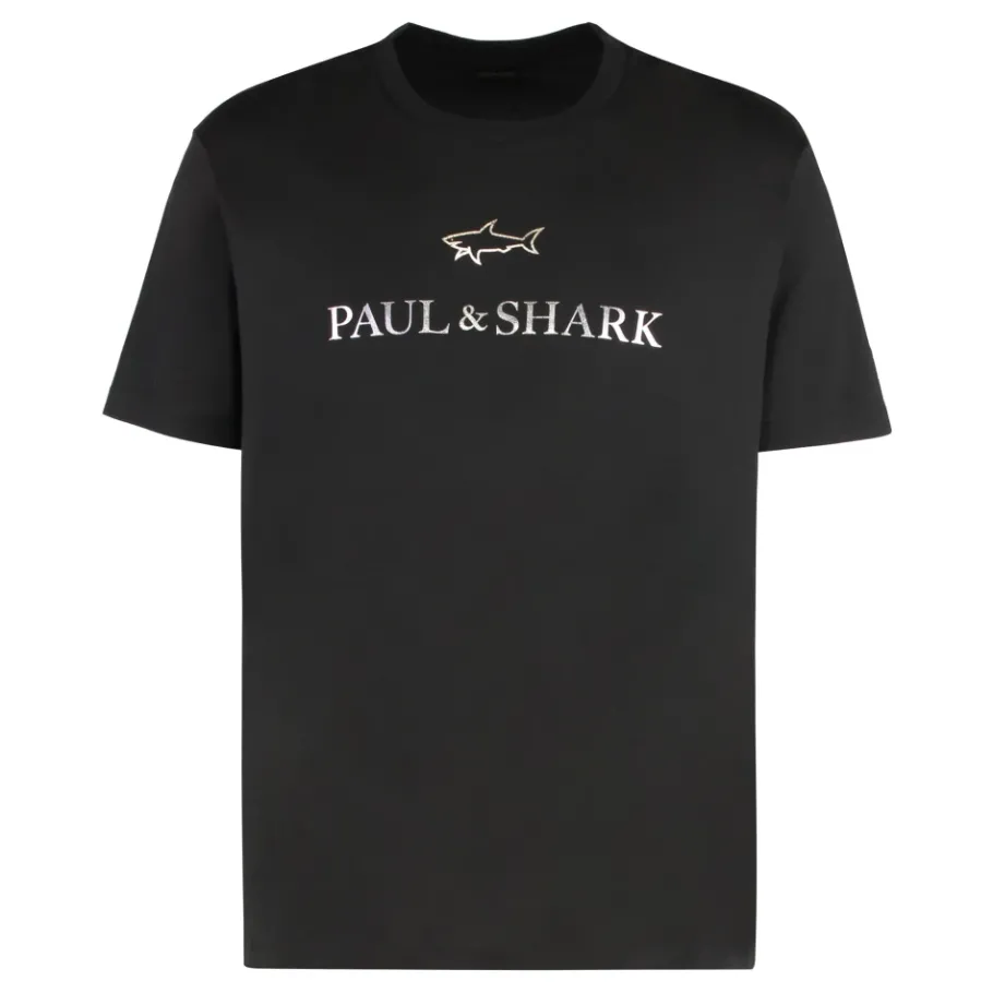 Paul & Shark T-shirt van katoenen jersey met een logo-opdruk aan de voorkant, met een ronde hals en korte mouwen voor dagelijks gebruik. Belangrijkste kenmerken: Zwart | Katoen | Ronde hals | Korte mouwen | Logo-opdruk aan de voorkant | Samenstelling & verzorging: 100% Katoen