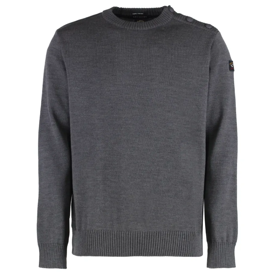 Paul & Shark trui met ronde hals in grijs, gemaakt van scheerwol met geribbelde boorden voor een strakke, gestructureerde afwerking. Belangrijkste kenmerken: Grijs | Scheerwol | Ronde hals | Geribbelde boorden | Samenstelling & onderhoud: 100% Scheerwol