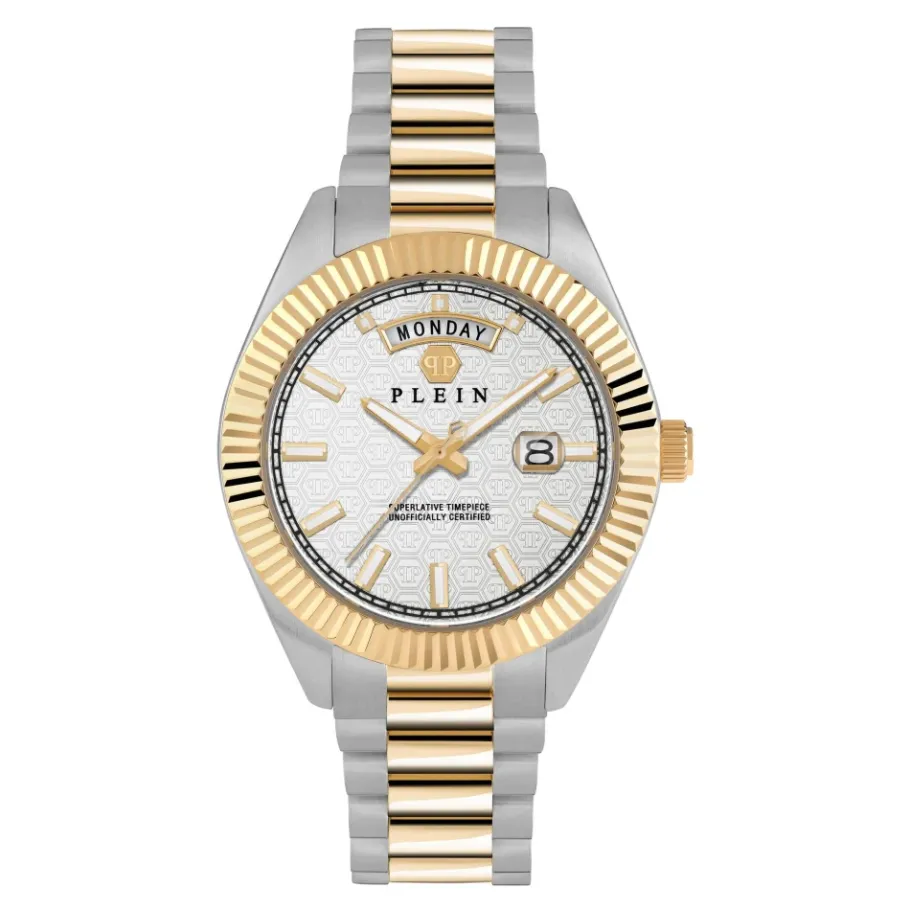 De Philipp Plein Date Superlative Gent Horloge combineert luxe en functionaliteit met zijn opvallende IP goud/zilverkleurige kast en zilveren wijzerplaat. Perfect voor wie een gedurfd design en nauwkeurige tijdwaarneming waardeert. Belangrijkste kenmerken: Goud | Zilver | Multicolor | Roestvrij staal | 5 ATM waterbestendigheid | IP Goud/Zilverkleurige kast | Zilveren wijzerplaat | IP Goud/Zilverkleurige armband | Samenstelling en onderhoud: Afnemen met een zachte doek om de glans te behouden.