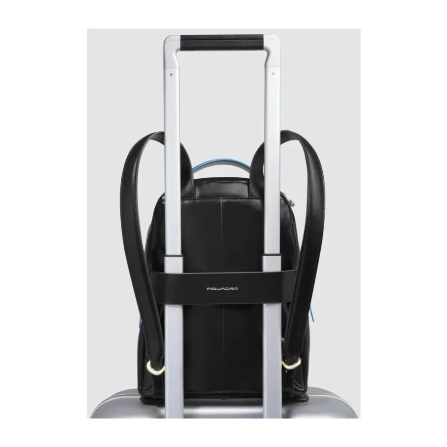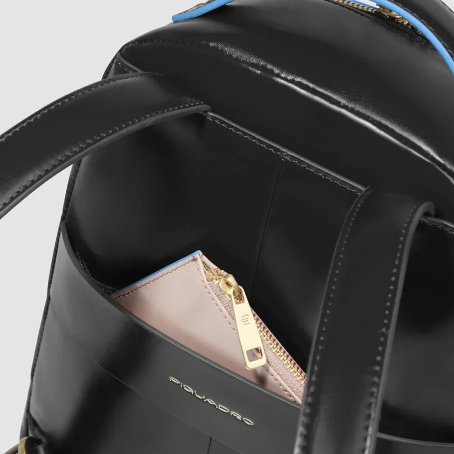 De Piquadro Blue Square Rugzak combineert een compacte lederen constructie met een geïntegreerde iPad® mini sleeve en ingebouwde RFID-bescherming. Hij is ontworpen voor georganiseerd dagelijks woon-werkverkeer en stadsgebruik. Belangrijkste kenmerken: Zwart | Nero | Leder | RFID-bescherming | iPad® mini-compartiment (niet uitneembaar) | Meerdere binnenzakken | Ritsvak aan de voorkant | Ritssluiting | Genaaid handvat aan de bovenkant | Blue Square collectie details | Fijn generfd lederen afwerking | Handgeschilderde ruwe randen | Afmetingen & pasvorm: 22,0 x 29,0 x 10,0 cm | Klein formaat | Inhoud: 7 L | Samenstelling & verzorging: Leder | Voering: 100% Polyester
