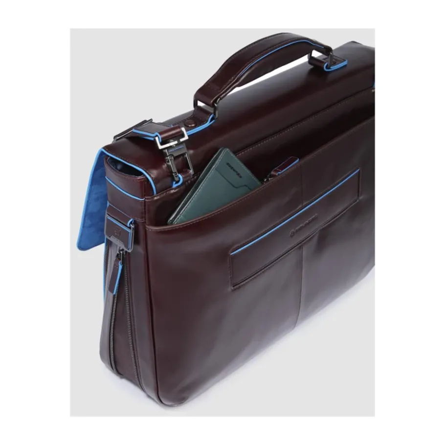 De uitbreidbare leren aktetas van Piquadro is een zakelijke tas die is ontworpen om een 15″ laptop te beschermen en tegelijkertijd georganiseerde opbergruimte te bieden. Het ontwerp met klep en de uitbreidbare constructie maken het een praktische keuze voor dagelijks woon-werkverkeer en reizen. Belangrijkste kenmerken: Bruin | Mogano | Leer | Gewatteerd laptopvak met schokabsorberende bescherming | Uitbreidbare capaciteit | Polyester gevoerde binnenkant | Afneembare, verstelbare schouderriem | Trolleyriem voor bagage | Meerdere interne vakken, waaronder een iPad-vak, een penhouder en een ritsvak | Ritsvakken voor en achter | Druksluiting | Klepsluiting | Handvat aan de bovenkant | Blue Square raw-cut edge details | Afmetingen en pasvorm: 41.0 x 30.0 x 10.0 / 14.5 cm (breedte x hoogte x diepte – uitgevouwen) | Geschikt voor laptops tot 15″ | Uitbreidbare diepte voor extra capaciteit | Samenstelling en verzorging: Leer | Binnenvoering: 100% Polyester | Reinig leer met een neutrale, op wax gebaseerde leerreiniger op een zachte doek; niet onderdompelen in water. Gebruik voor stoffen delen een vochtige spons met milde zeep en laat aan de lucht drogen, uit de buurt van directe hitte. Niet strijken.