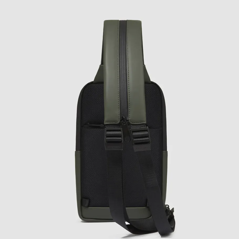Convertible to backpack men’s sling bag for iPad®mini in rubberized, water resistant fabric with RFID protection