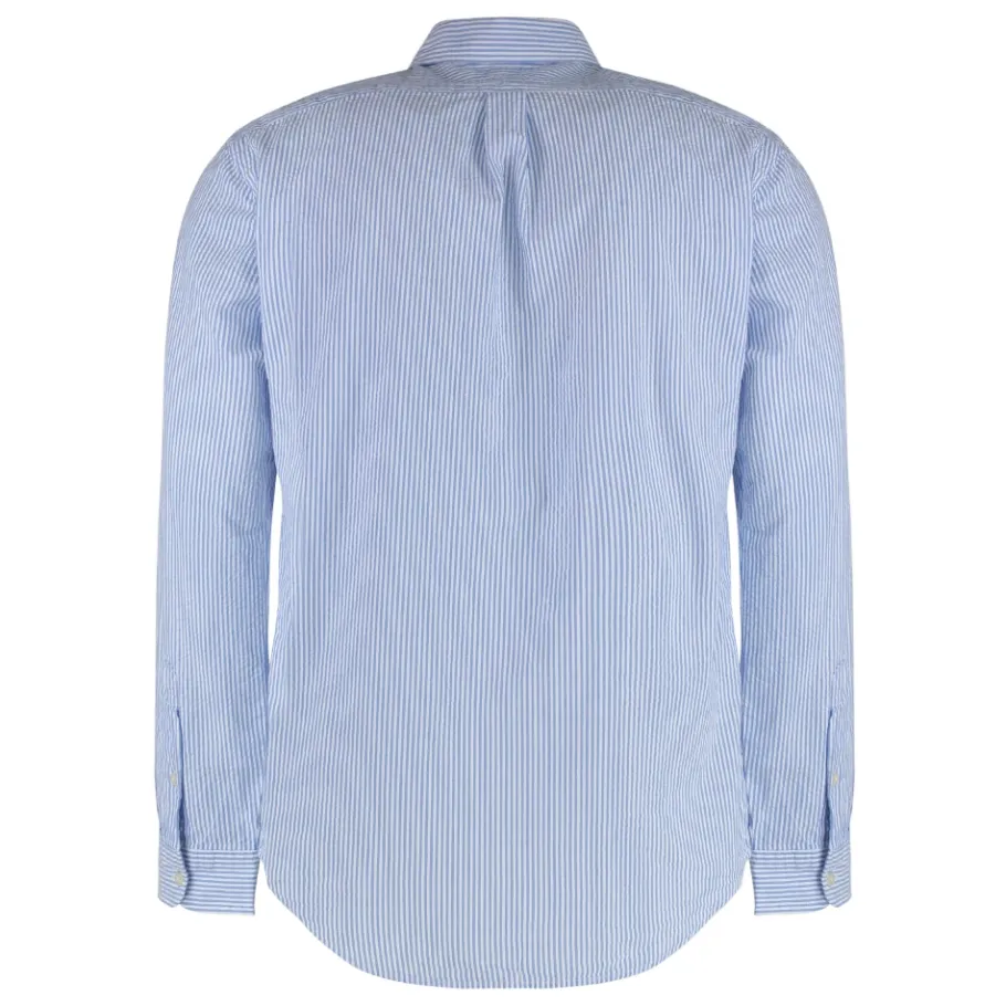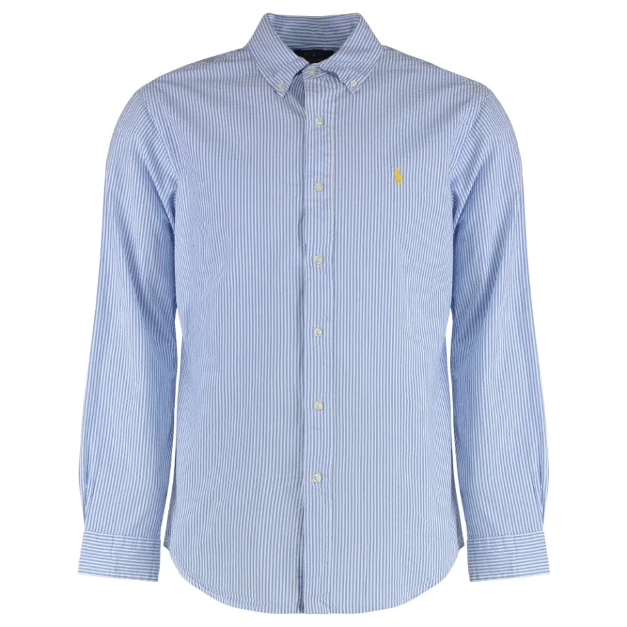 Polo Ralph Lauren button-down katoenen overhemd met een gestreept motief en afgeronde zoom voor een nette, casual look die geschikt is voor dagelijks gebruik. Belangrijkste kenmerken: Blauw | Lichtblauw | Katoen | Button-down kraag | Gestreept motief | Afgeronde zoom | Samenstelling & onderhoud: 100% Katoen