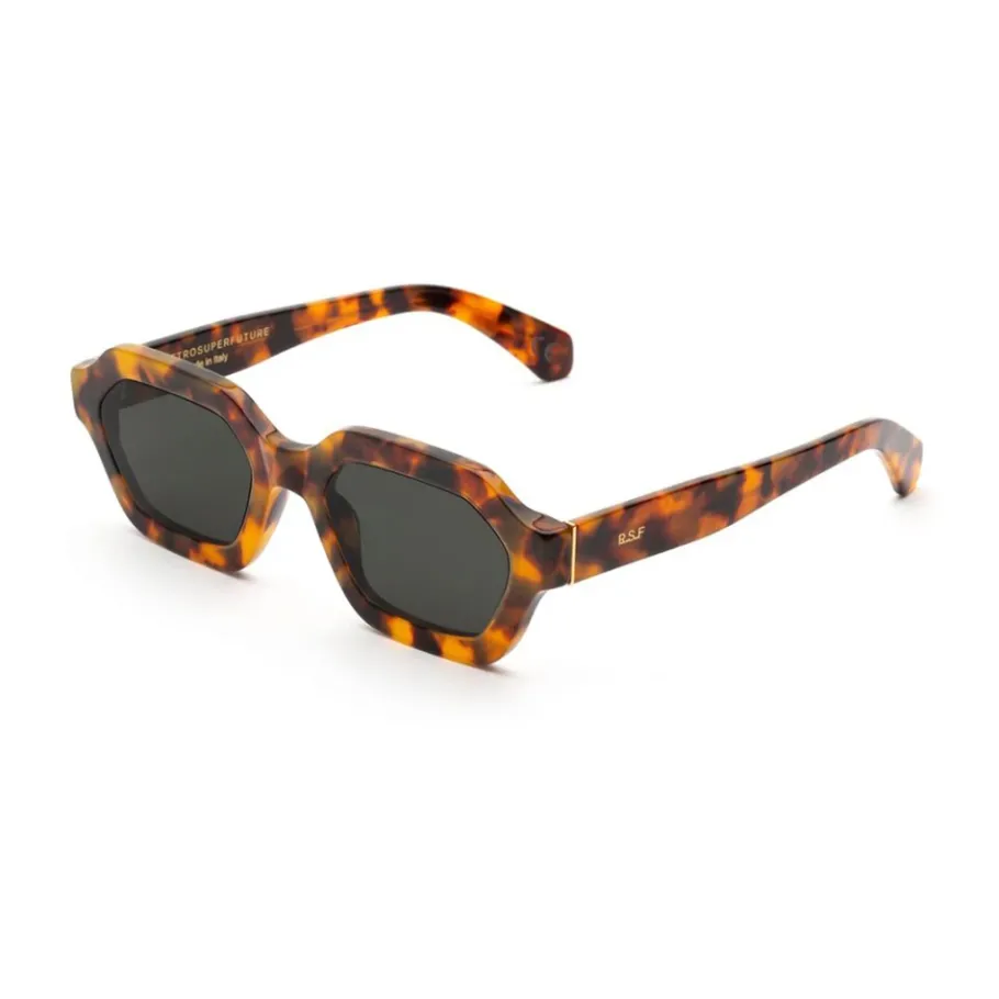 De Retrosuperfuture Pooch Zonnebril combineert een gedurfd zeshoekig silhouet met brede glazen, en biedt een opvallende streetwear-uitstraling en een alledaagse statement-look. Belangrijkste kenmerken: Spotted Havana | Acetaat | Inclusief semi-harde koker en schoonmaakdoekje | Lage neusbrug voor een stevige pasvorm | Zeshoekig frame | Brede glazen | Hoekige pootjes | Dikke acetaatconstructie | Afmetingen en pasvorm: Lensbreedte: 54 mm | Pootlengte: 145 mm | Regular fit (Maat R) | Samenstelling en verzorging: Acetaat | Veeg de lenzen schoon met een zachte reinigingsdoek. Bewaar in de meegeleverde semi-harde koker.