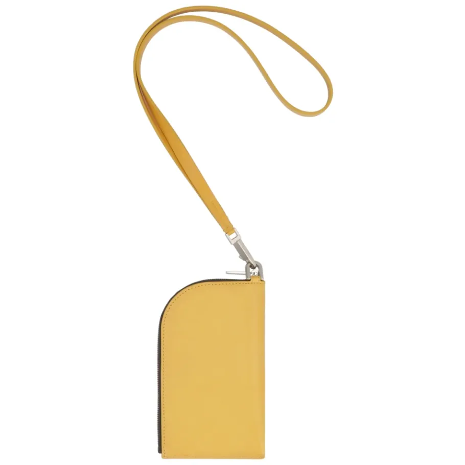 De Rick Owens EDFU Neck Wallet is een compacte nekportemonnee van kalfsleer, ontworpen voor veilig en handsfree dragen. Het heeft een ritssluiting aan de bovenkant en een afneembare riem voor eenvoudig, dagelijks gebruik. Belangrijkste kenmerken: Geel | Kalfsleer | Ritssluiting aan de bovenkant | Afneembare leren riem | Zilverkleurige metalen hardware | Leren voering | Afmetingen & pasvorm: Breedte: 11 cm | Hoogte: 18 cm | Diepte: 1,5 cm | Riem: 50 cm | Samenstelling & onderhoud: 100% Kalfsleer