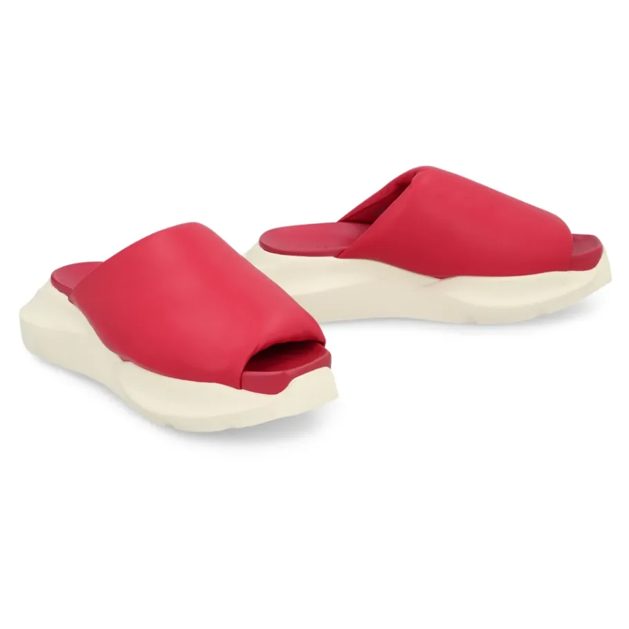 De Rick Owens Geth Leather Slides zijn gevoerde instapsandalen die worden gekenmerkt door een vierkante neus en een chunky zool van 4 cm, gemaakt voor gedurfde, casual looks. Belangrijkste kenmerken: Rood | Lamsleer | Instapmodel | Open teen | Vierkante neus | Chunky zool (4 cm) | Gevoerde band (puffer style) | Open teen | Afmetingen & pasvorm: Zoolhoogte: 4 cm | Valt normaal qua maat | Samenstelling & verzorging: 100% Lamsleer