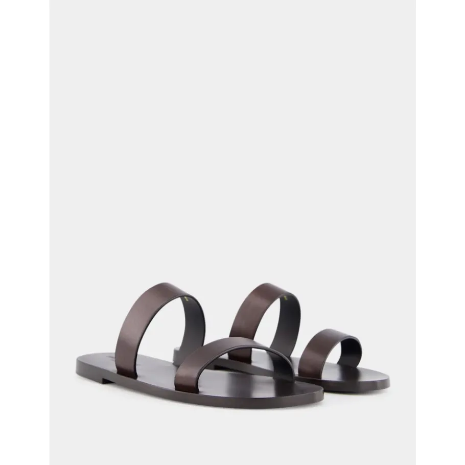 Verhoog je stijl met deze Saint Laurent Ultra Dark Brown Pepe Slide Sandalen voor heren. Gemaakt van glad kalfsleder, hebben deze sliders een dikke boog- en teenband voor een veilige pasvorm. De leren zool voegt verfijning toe, waardoor ze geschikt zijn voor verschillende gelegenheden. Gemaakt in Italië. Verzorgingsinstructies: Specialistische lederreiniging.