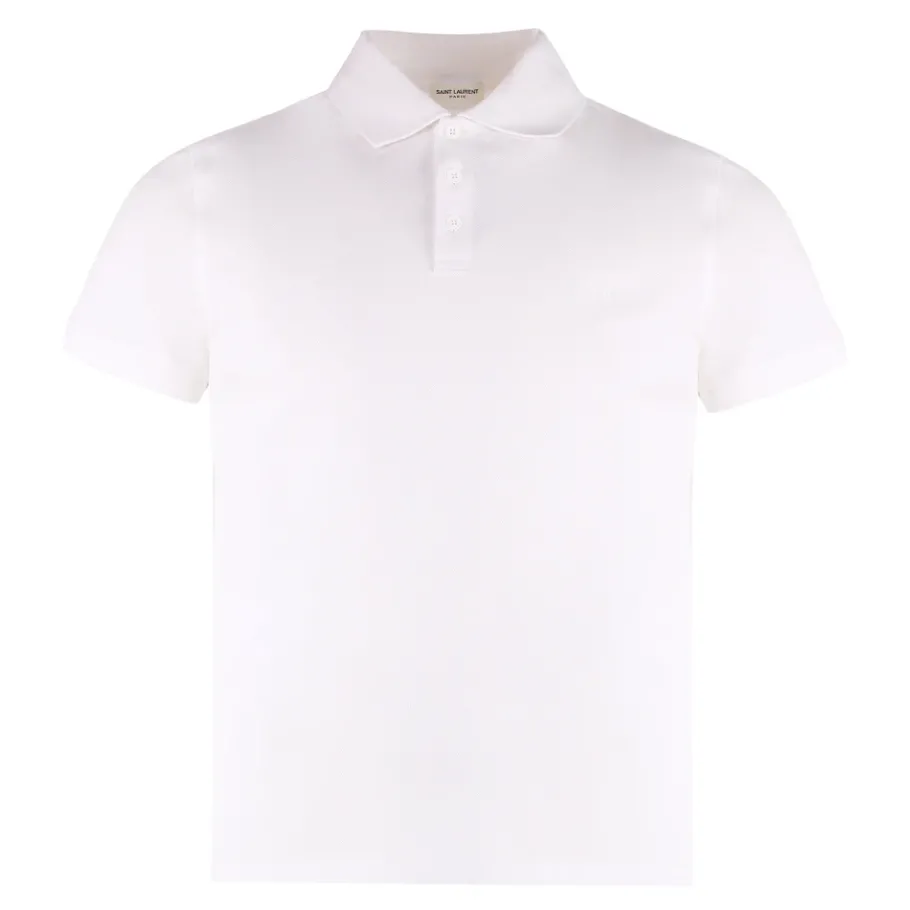 Het Saint Laurent Cotton-piqué Polo Shirt combineert een klassiek polo silhouet met geribbelde boorden en een discreet geborduurd logo. Het is ontworpen voor verfijnde, smart-casual kleding. Belangrijkste kenmerken: Wit | Katoen | Sluiting met 3 knopen | Geborduurd logo | Knoopsluiting | Polokraag | Korte mouwen | Geribbelde boorden | Rechte zoom | Afmetingen en pasvorm: Regular fit | Valt normaal qua maat | Samenstelling en onderhoud: 100% katoen | Wassen op 30°C