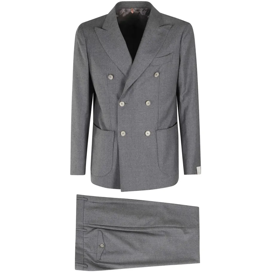 Het Santaniello Natural Stretch Lana Suit combineert een double-breasted jas met puntrevers en een getailleerde broek in een wol-kasjmiermix. Ontworpen voor formele en zakelijke gelegenheden, biedt het een verfijnd silhouet met extra stretch voor comfort. Belangrijkste kenmerken: Grijs | Wol-kasjmiermix | Natuurlijke stretch | Double-breasted sluiting | Bijpassende jas en broek set | Double-breasted jas | Puntrevers | Getailleerde broek | Afmetingen en pasvorm: Regular fit | Samenstelling en onderhoud: Wol | Kasjmier