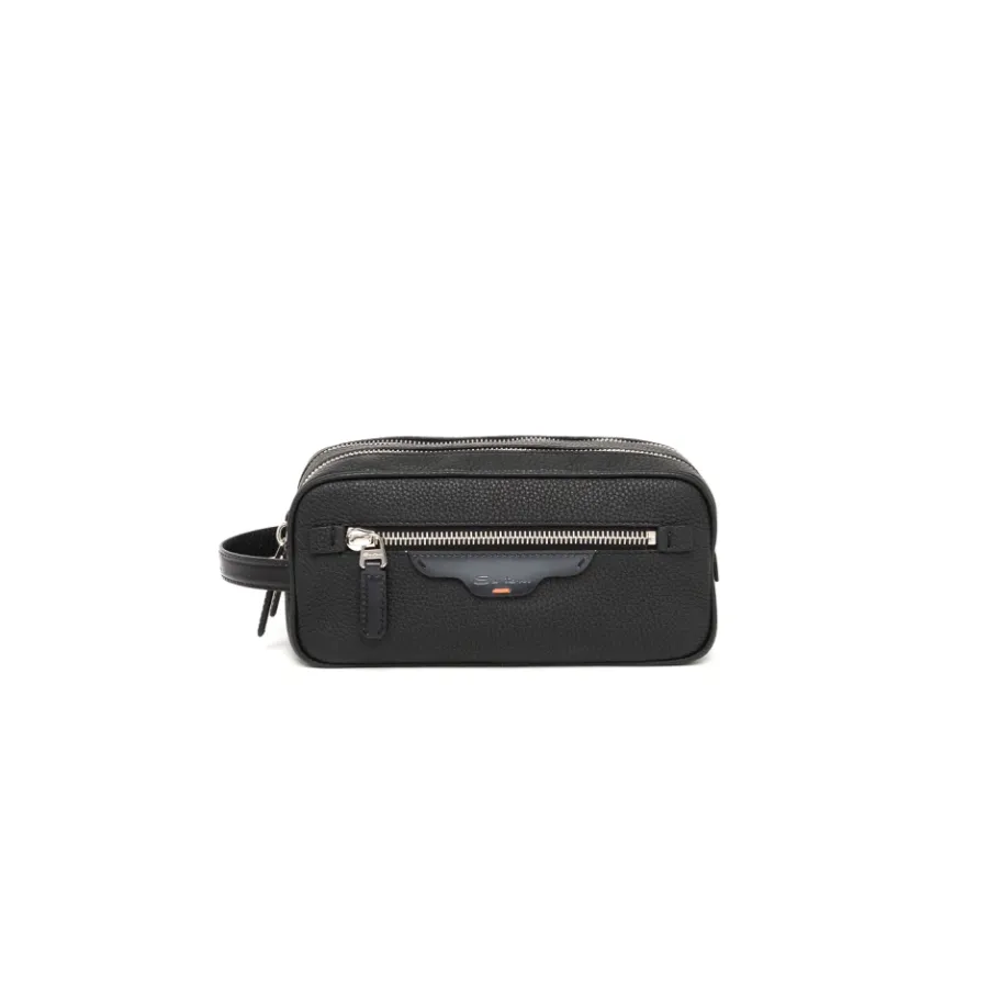 Santoni Beauty in pelle martellata is een lederen toilettas afgewerkt met gehamerd leer, ontworpen om toiletartikelen georganiseerd te houden tijdens het reizen. Belangrijkste kenmerken: Zwart | Leer | Gehamerde leertextuur | Samenstelling & onderhoud: Leer | Afnemen met een zachte, droge doek. Vermijd langdurige blootstelling aan water en directe hitte. Breng indien nodig leerconditioner aan.