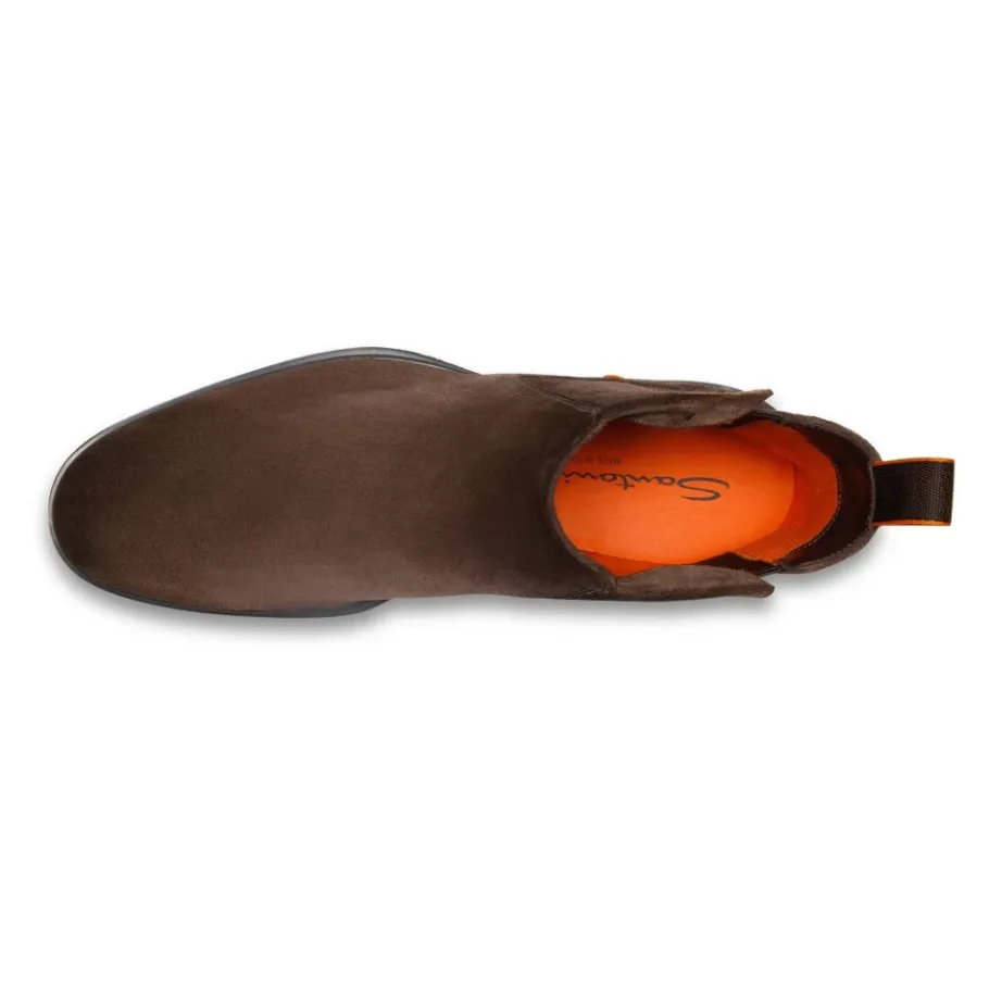 Upgrade je stijl met deze Santoni donkerbruine suède Chelsea boots. Met een ultralichte constructie en behandeld met Santoni’s unieke kleurgradatietechniek, zijn deze laarzen zowel stijlvol als comfortabel. De elastische zij-inzetstukken, ronde neus, logobandtreklip en geperforeerde nappa voering dragen bij aan het premium gevoel. Met een memory foam binnenzool en oranje rubberen zool met dubbele gesp patroon, zijn deze laarzen net zo comfortabel als modieus. Compleet met een gedrukt Santoni-logo op de binnenzool.