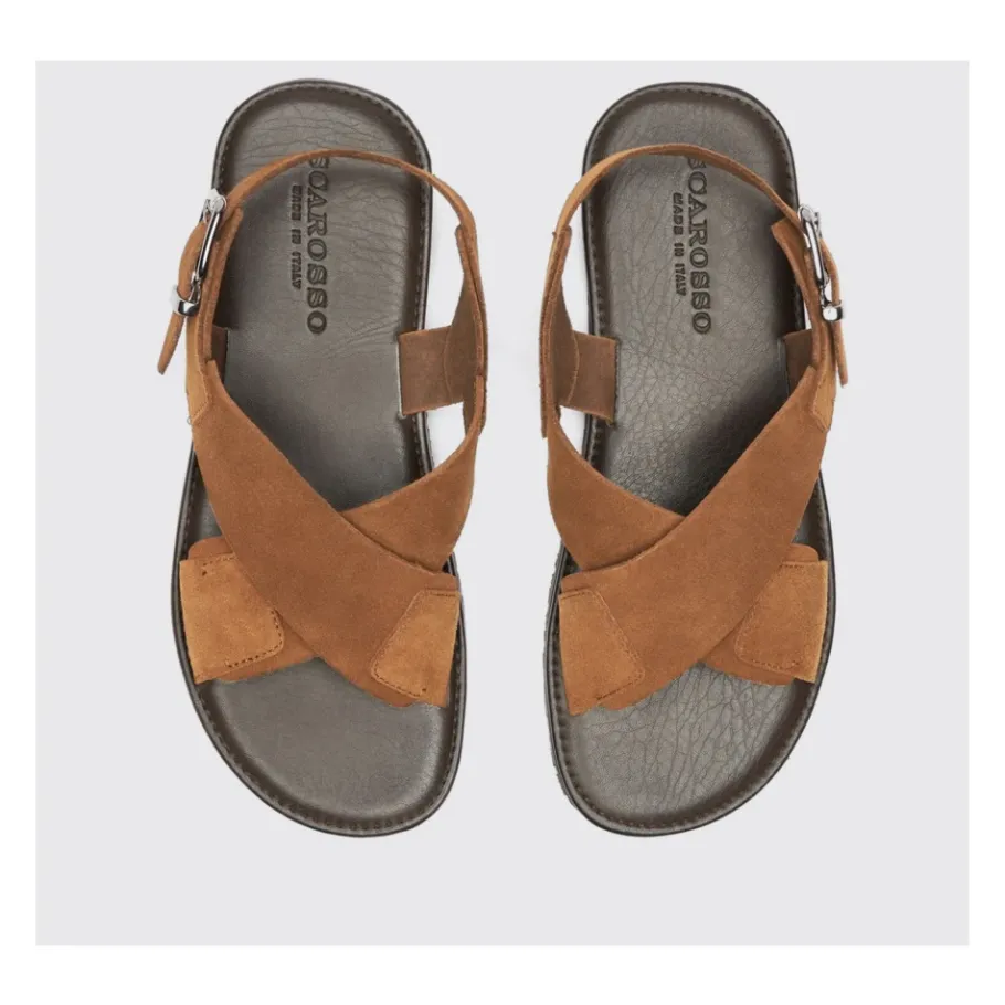 Stap de zomer in met de Massimo Sandalen, handgemaakt in Italië door de ervaren ambachtslieden van Scarosso met behulp van luxueus suède leer voor ongeëvenaard comfort en stijl. Belangrijkste kenmerken: Tan | Bruin | Suède leer | Verstelbare gespsluiting | Kruisende brede leren banden | Samenstelling en onderhoud: 100% kalfsleer | 100% rubber