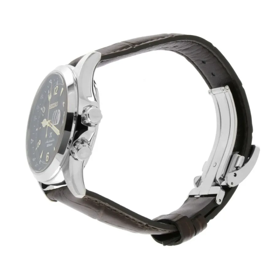 De Seiko Alpinist is een automatisch Prospex horloge dat een opvallende groene wijzerplaat combineert met robuuste functies voor dagelijks gebruik en outdoor activiteiten. Belangrijkste kenmerken: Groen | Bruin | Staal | Roestvrij staal | Waterbestendigheid 20 ATM | 70 uur gangreserve | Automatisch uurwerk (Kaliber 6R35) | Saffierglas | Datumweergave met vergrootglas | Draaibare kompas binnenring | Schroefkroon | Transparante achterkant | Drievoudige sluiting met drukknopontgrendeling | Groene wijzerplaat | Bruine lederen band | Ronde kast | Arabische cijfers | Lichtgevende wijzers en markeringen | Cyclops datumvergrootglas | Afmetingen & pasvorm: Diameter: 39,5 mm | Dikte: 13,2 mm | Lug-to-lug: 46,4 mm | Samenstelling & onderhoud: Roestvrij staal | Leer | Saffierglas