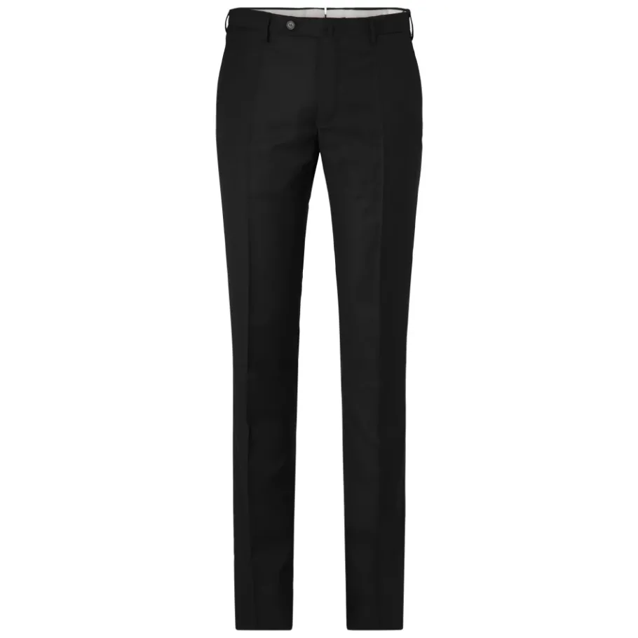 SLOWEAR Slim Fit Chino Broeken combineren een getailleerd silhouet met klassieke chino details voor een smart-casual garderobe. Strakke achterzakken met knoopsluiting geven een verfijnde, praktische touch. Belangrijkste kenmerken: Zwart | Scheerwol | Twee achterzakken met knoopsluiting | Chino styling | Paspelzak details | Afmetingen & pasvorm: Slim fit | Samenstelling & verzorging: 100% Scheerwol | 96% Katoen, 4% Polyester