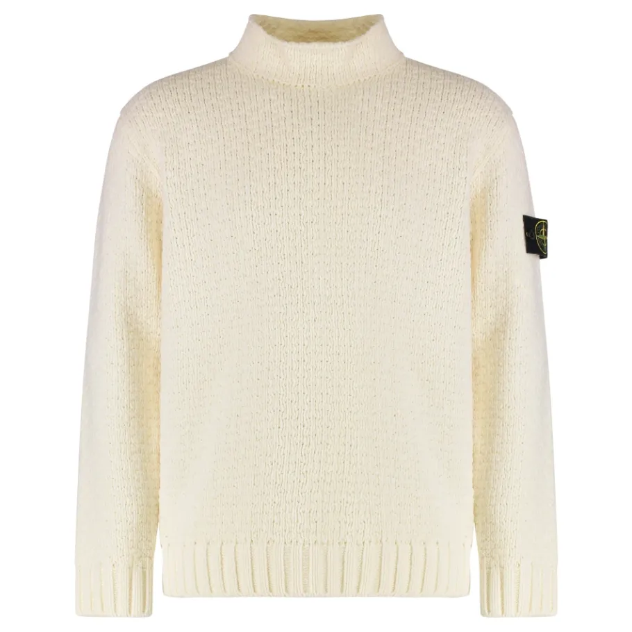 Stone Island Cotton Chenille Mock Neck Sweater-Heren Truien & Vesten