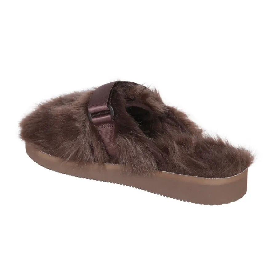 Upgrade je stijl met deze SUICOKE bruine pantoffels van imitatiebont. Met een ronde neus en instapdesign bieden ze gemakkelijk draagcomfort en stijl, perfect voor informele uitstapjes. Gemaakt van 100% acryl en 100% rubber.