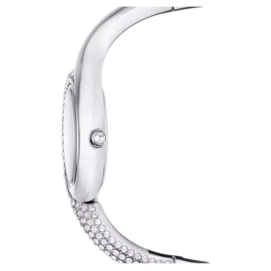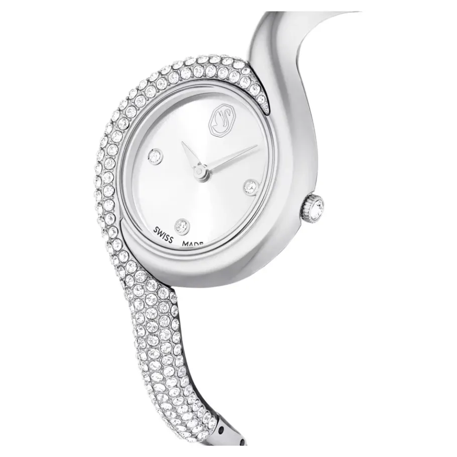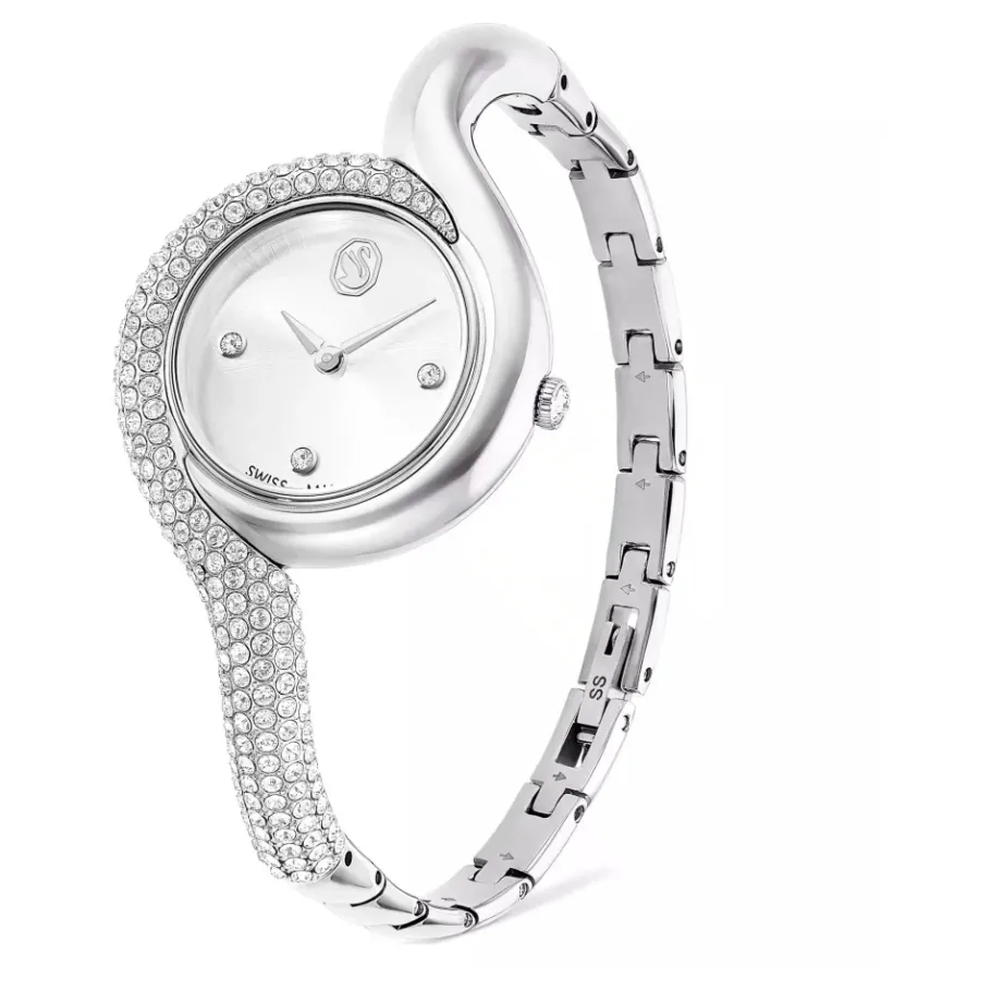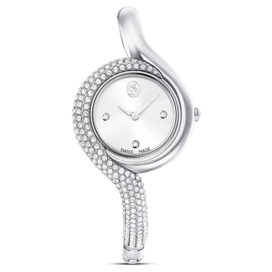 Upgrade je stijl met deze prachtige Swarovski-horloge. Gemaakt van roestvrij staal en sprankelende Swarovski-kristallen in zilverkleur, heeft dit horloge een kastdiameter van 28 mm, Zwitsers quartz uurwerk en 203 kristallen op de lunet, armband en kroon. Waterbestendig tot 50 meter, dit horloge is zowel elegant als functioneel. Gemaakt in Zwitserland.