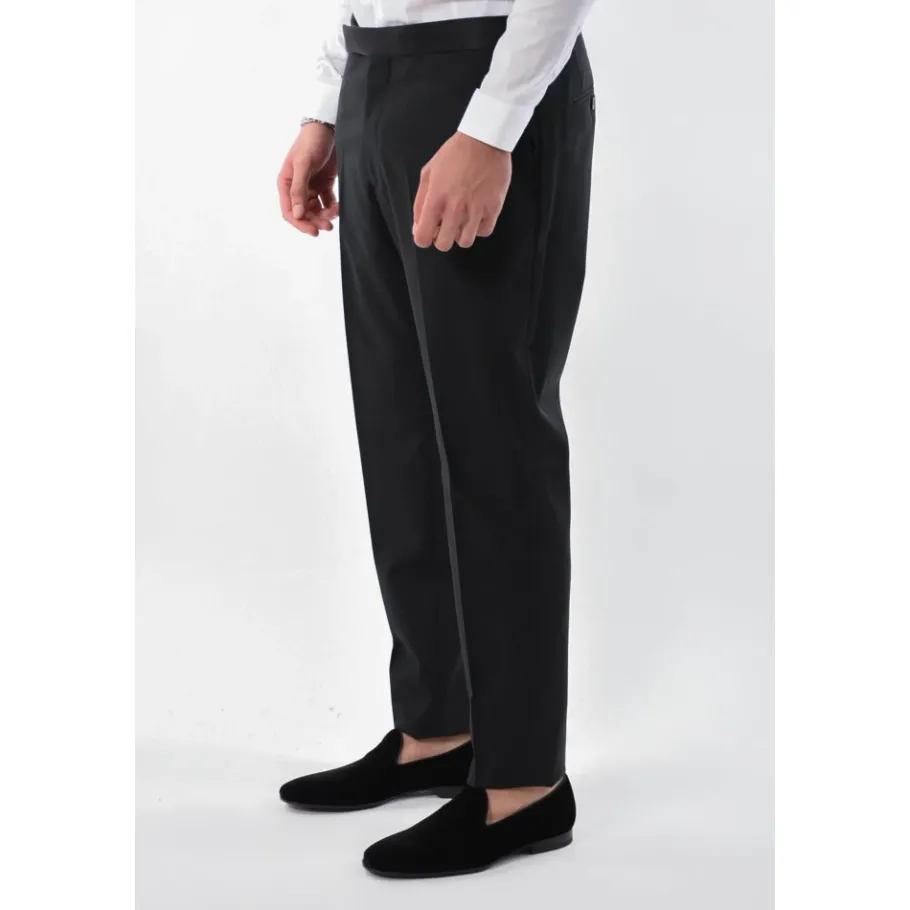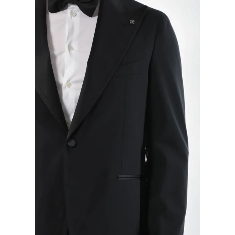 Verrijk uw formele garderobe met het Tagliatore Smoking Kostuum, vervaardigd in Italië van 99% Super 110s scheerwol en 1% elastaan. Dit slim-fit kostuum is voorzien van satijnen revers en is perfect voor wie waarde hecht aan kwaliteit en stijl. Belangrijkste kenmerken: Zwart | 99% Super 110s scheerwol | 1% elastaan | Satijnen revers | Voorzakken met satijnen biezen | Borstzak | Satijnen knopen | Centrale rugsplit | Interne voering | 4 interne zakken | Laag uitgesneden broek | Zij- en achterzakken | 17 cm beenopening | Afmetingen en pasvorm: Slim fit | Samenstelling en onderhoud: 99% Super 110s scheerwol | 1% elastaan