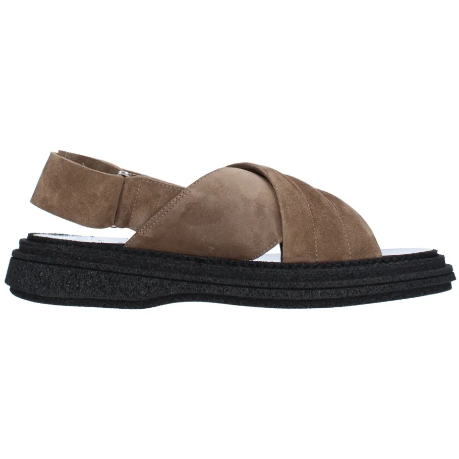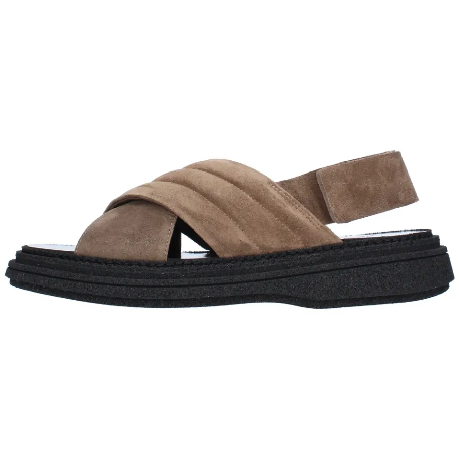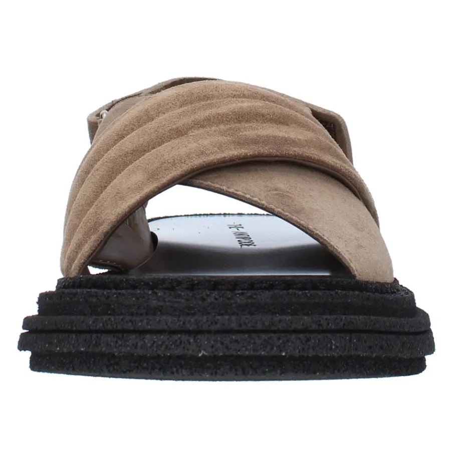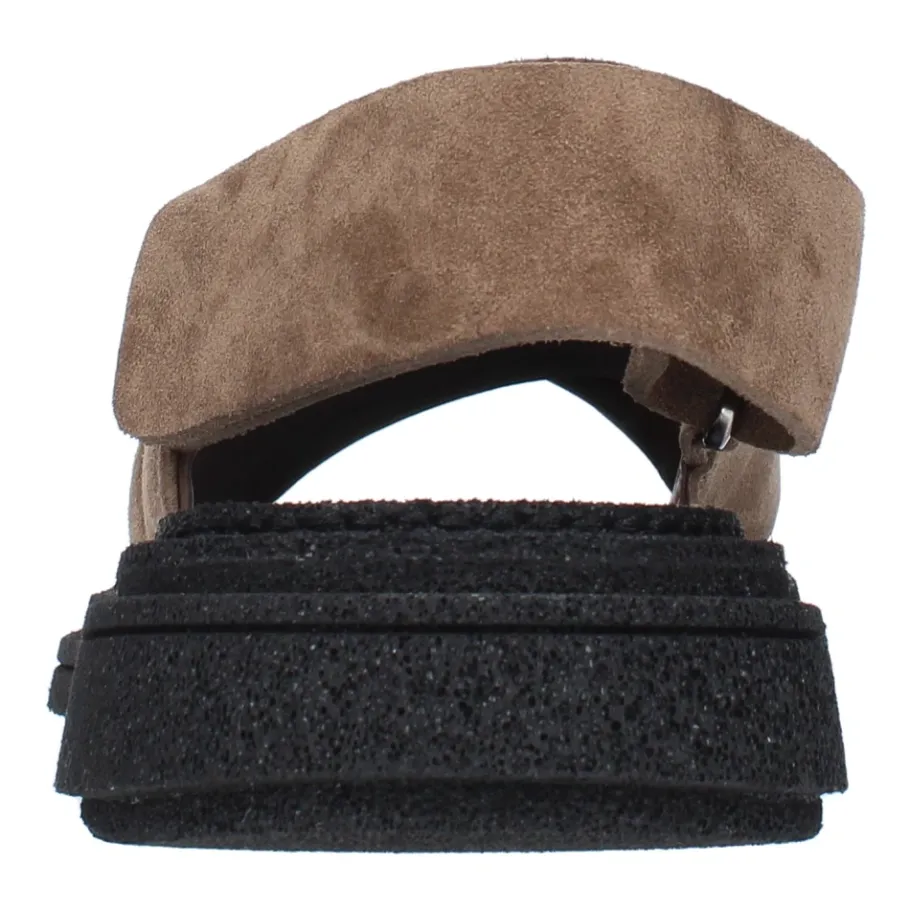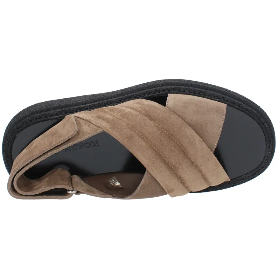 THE ANTIPODE heren platte sandalen van suède. Achterband met klittenband. Rubberen zool. Leren voering.