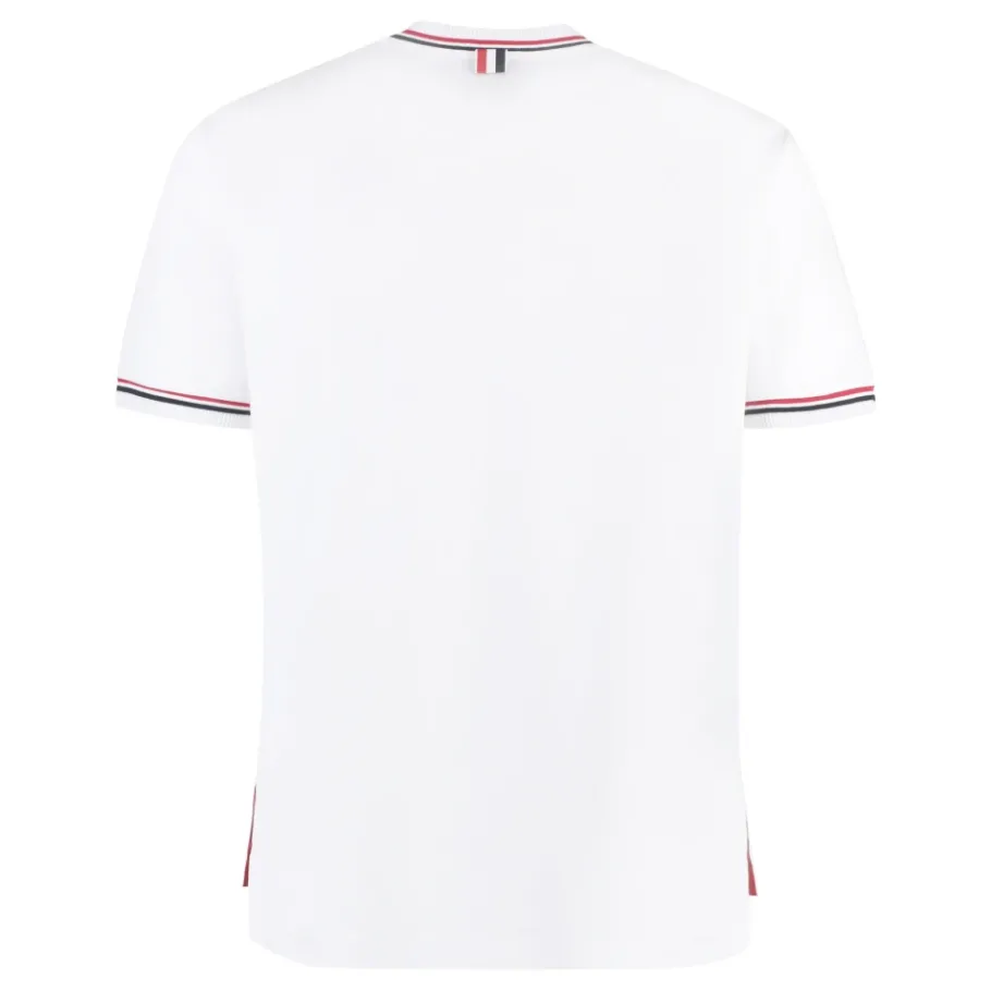 De Thom Browne Cotton Crew-Neck T-Shirt geeft een update aan een garderobe-basisstuk met kenmerkende details – tricolor rugstrip en een asymmetrische zoom met knoopsluitingen aan de zijkant – voor een gepolijste, alledaagse look. Belangrijkste kenmerken: Wit | Katoen | Ademende stof | Zijsplitten met kleine knoopsluitingen | Ronde hals | Korte mouwen | Tricolor detail op de rug | Contrasterende afwerking | Asymmetrische zoom met zijsplitten en kleine knopen | Afmetingen & pasvorm: Valt normaal qua maat. | Thom Browne maatvoering: 00 = XXS | 0 = XS | 1 = S | 2 = M | 3 = L | 4 = XL | 5 = XXL | Samenstelling & verzorging: 100% Katoen