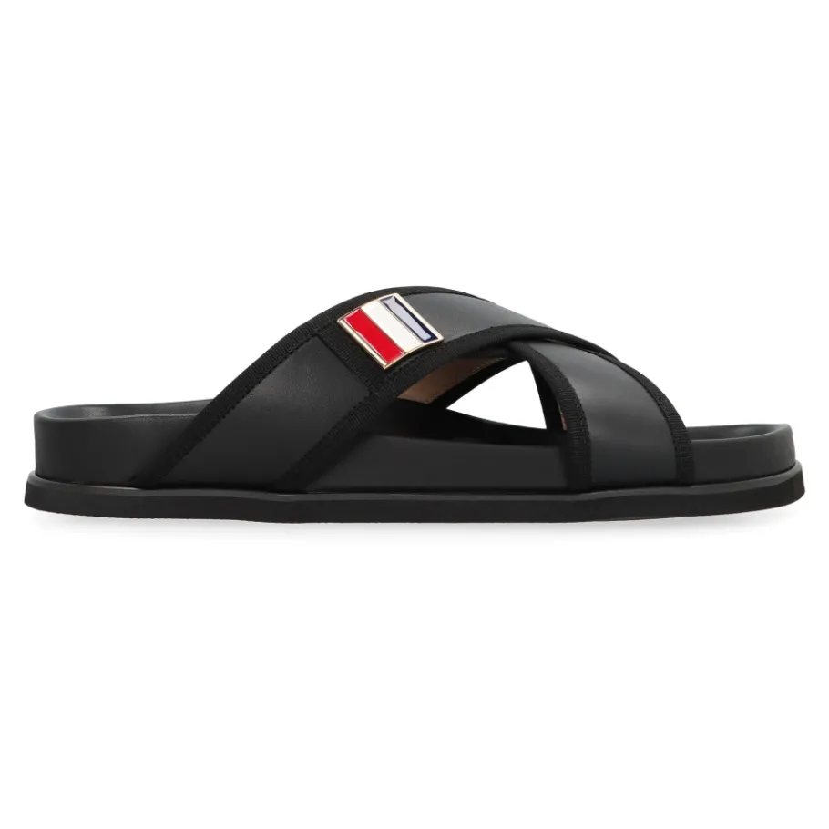 Thom Browne Leren Slippers met Grosgrain Lintdetails-Heren Slippers