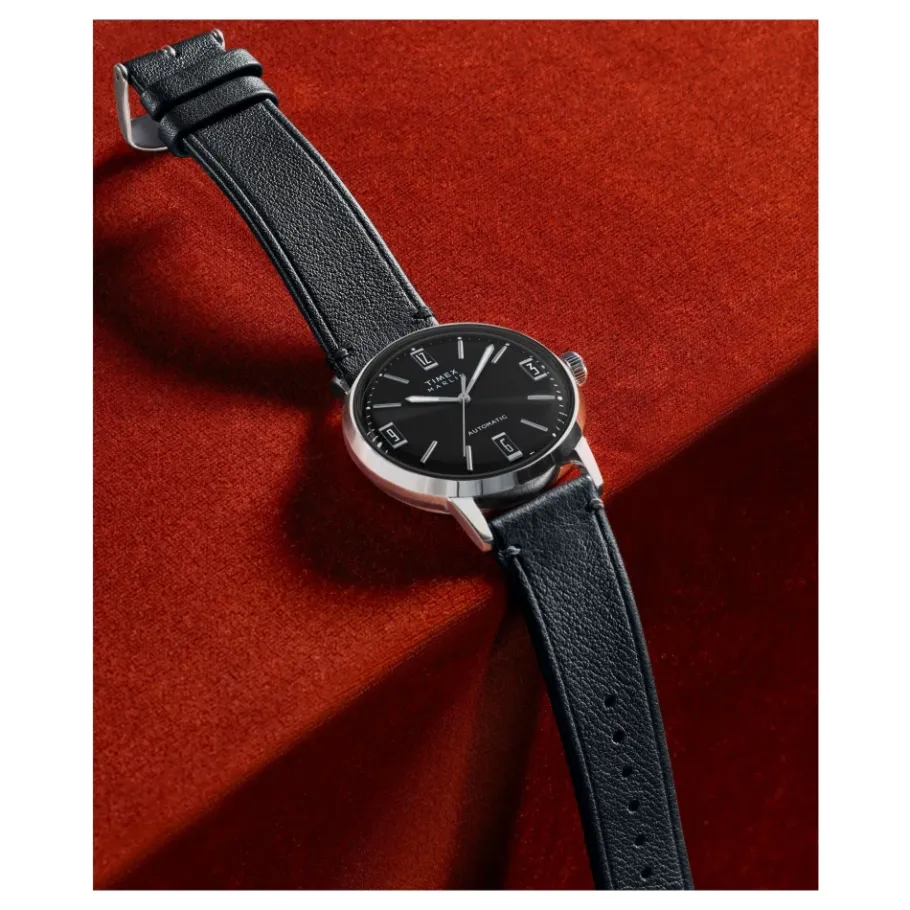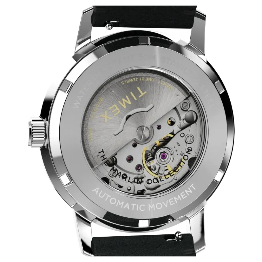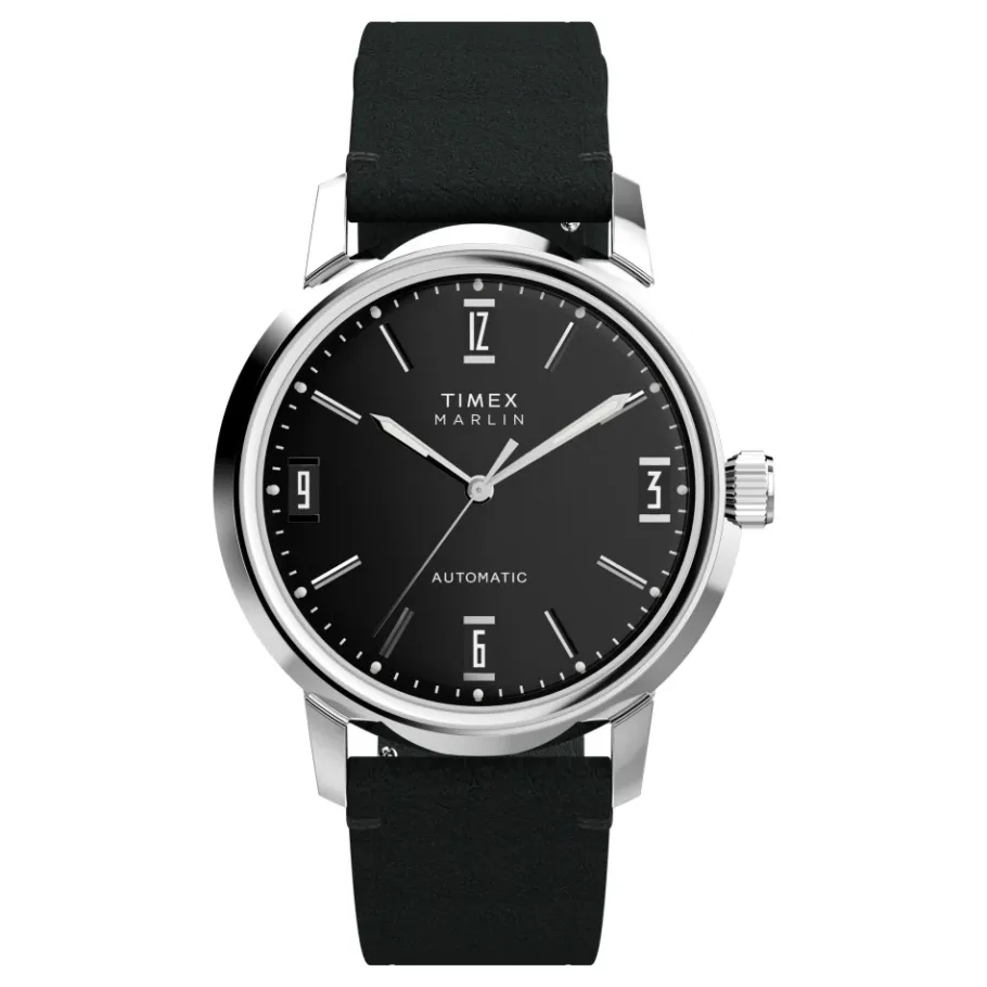 Maak kennis met de Timex Marlin Automatic horloge voor heren. Dit klassieke horloge heeft een 40 mm roestvrijstalen kast, zwarte lederen band en een strakke zwarte wijzerplaat met dag-datum kalenderfunctie. Het automatische uurwerk zorgt voor nauwkeurige tijdweergave, terwijl de lichtgevende wijzers het gemakkelijk maken om af te lezen bij elk licht. Verrijk je stijl met dit verfijnde accessoire van Timex.