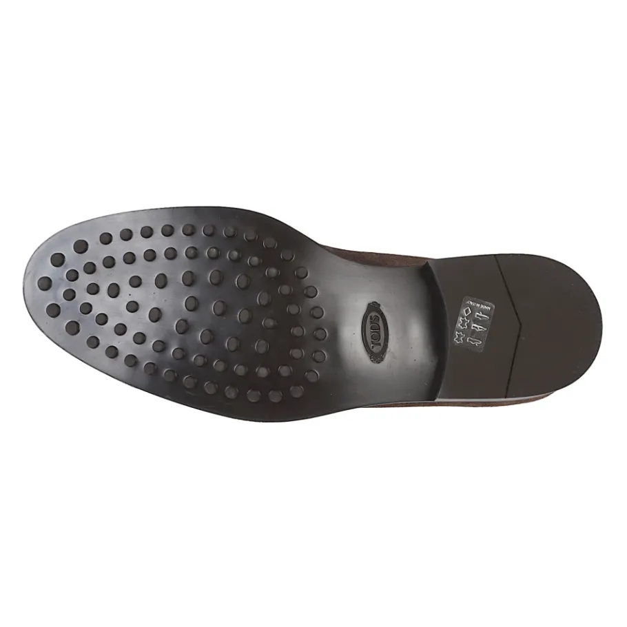 Tod’s Formale Loafers zijn verfijnde suède instapschoenen die klassieke details combineren met een gripvaste rubberen zool. Ze passen bij formele en smart-casual garderobes waar comfort en Italiaans vakmanschap prioriteit hebben. Belangrijkste kenmerken: Bruin | Testa moro | Suède | Rubberen zool met pebble grip | buitenzool | Slip-on constructie | Volledig lederen voering | Gemakkelijk aan/uit te trekken | Afgeronde neus | Penny keeper | Handgestikte naden | Laag silhouet | Reliëf monogram | Samenstelling & verzorging: 100% kalfsleer (buitenkant) | Voering: 100% leer | Zool: 100% rubber