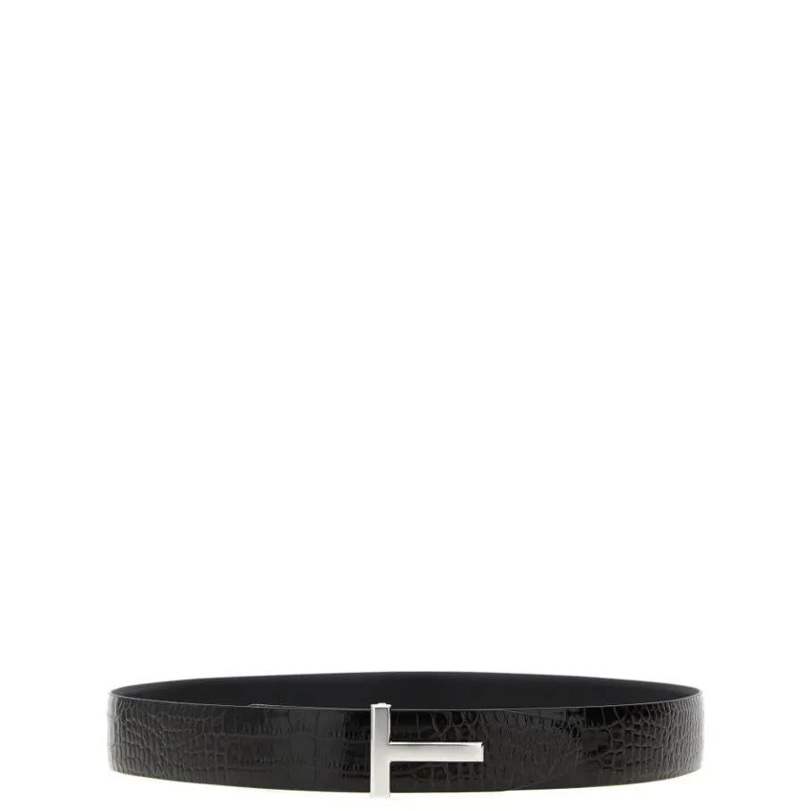 De Tom Ford omkeerbare riem van krokodillenleer combineert een krokodillenprint glanzende lederen zijde met een matte, gladde lederen zijde en een metalen T-logo gesp voor veelzijdige, gepolijste styling. Belangrijkste kenmerken: Bruin | Kalfsleer | Omkeerbaar | Gespsluiting | Verstelbaar | Krokodillenprint | Glanzende en matte lederen afwerkingen | T-logo gesp | Samenstelling & verzorging: 100% kalfsleer (Bos Taurus)