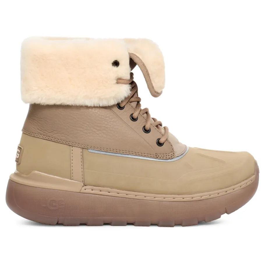 De UGG City Butte is een weerbestendige laars die waterdichte bescherming combineert met een geïsoleerde UGGplush-voering voor koude stedelijke omstandigheden. Hij is ontworpen voor betrouwbare grip en warmte op natte of besneeuwde straten. Belangrijkste kenmerken: Beige | Dune | Waterdicht leer en suède | Waterdichte constructie | Geïsoleerde voering voor koud weer | rubberen buitenzool met grip | Lichtgewicht EVA-middenzool | Tong met inzetstuk en waterafstotende coating | Constructie met verzegelde naden | Manchet kan omhoog of omlaag worden gedragen | Silhouet met veters | Omvouwbare kraag | Warmte-reliëflogo | Reflecterende overlays | Afmetingen en pasvorm: Schacht hoogte: 17,8 cm | Schachtomtrek: 44,5 cm | Hakhoogte: 3,8 cm | Samenstelling en verzorging: Leren bovenwerk | Suède details | Wollen en lyocell voering | EVA-middenzool | Rubberen buitenzool | Schuim voetbed | Polyester veters.UGG`s zitten in het begin soms strak, maar de voering kan uitrekken naarmate u ze vaker draagt. We raden u aan uw gebruikelijke maat te kiezen.