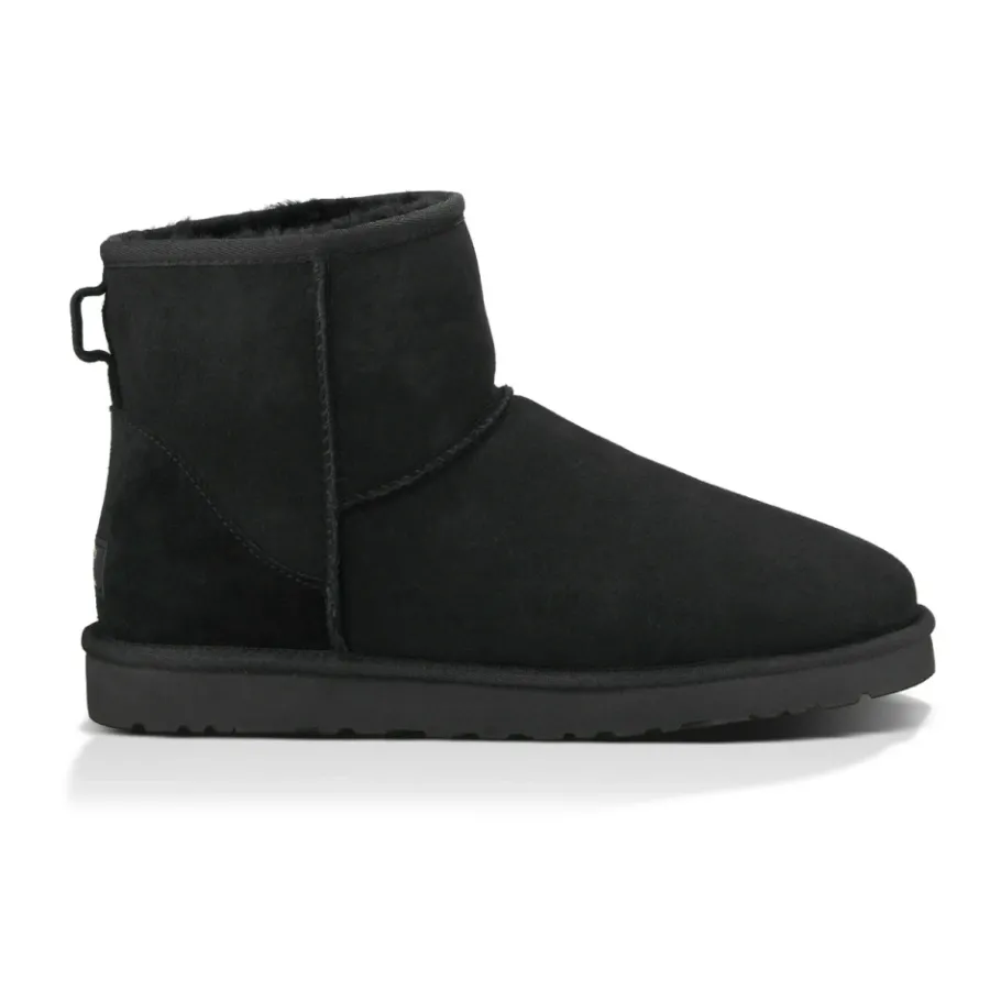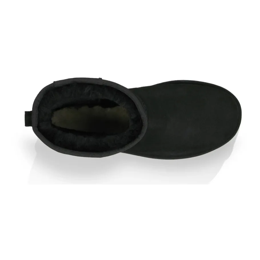 De UGG Classic Mini Boot is een suède laars tot aan de enkel, ontworpen voor dagelijkse warmte en betrouwbare grip, met een inlegzool van schapenvacht en een flexibele Treadlite-buitenzool. Belangrijkste kenmerken: Zwart | Suède | Water- en vlekbestendig | Treadlite-buitenzool voor grip | Inlegzool van schapenvacht (bont) | Voetbed van schuim | Trekbandje aan de hiel | Enkelhoog silhouet | Geweven suède hielstuk met logo | Trekbandje aan de achterkant | Afmetingen & pasvorm: Hoogte: 15 cm | Samenstelling & verzorging: Suède | Schapenvacht | Rubber | Schuim