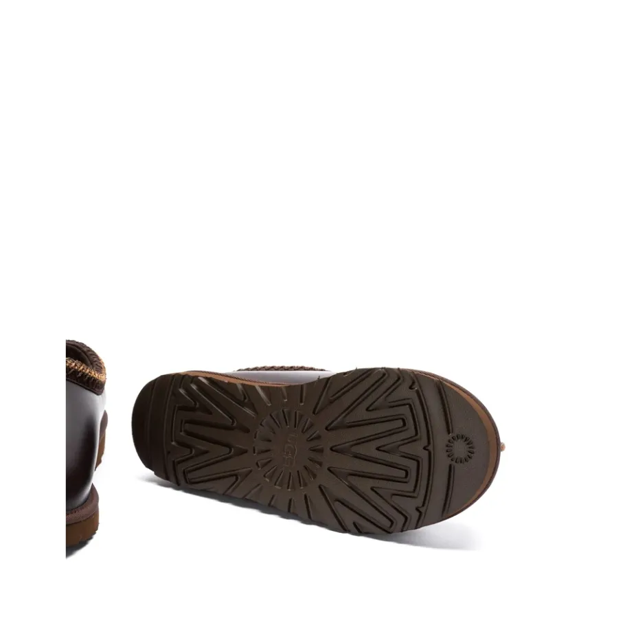 Blijf gezellig en stijlvol met deze UGG heren slippers in cederbruin leer en schapenvacht. Met een gedrukt logo aan de voorkant, ronde neus, instapmodel, merkvoetbed en platte rubberen zool. Gemaakt met 100% schapenvacht voering, 100% Bos Taurus buitenste samenstelling en 100% rubberen zool..UGG`s zitten in het begin soms strak, maar de voering kan uitrekken naarmate u ze vaker draagt. We raden u aan uw gebruikelijke maat te kiezen.