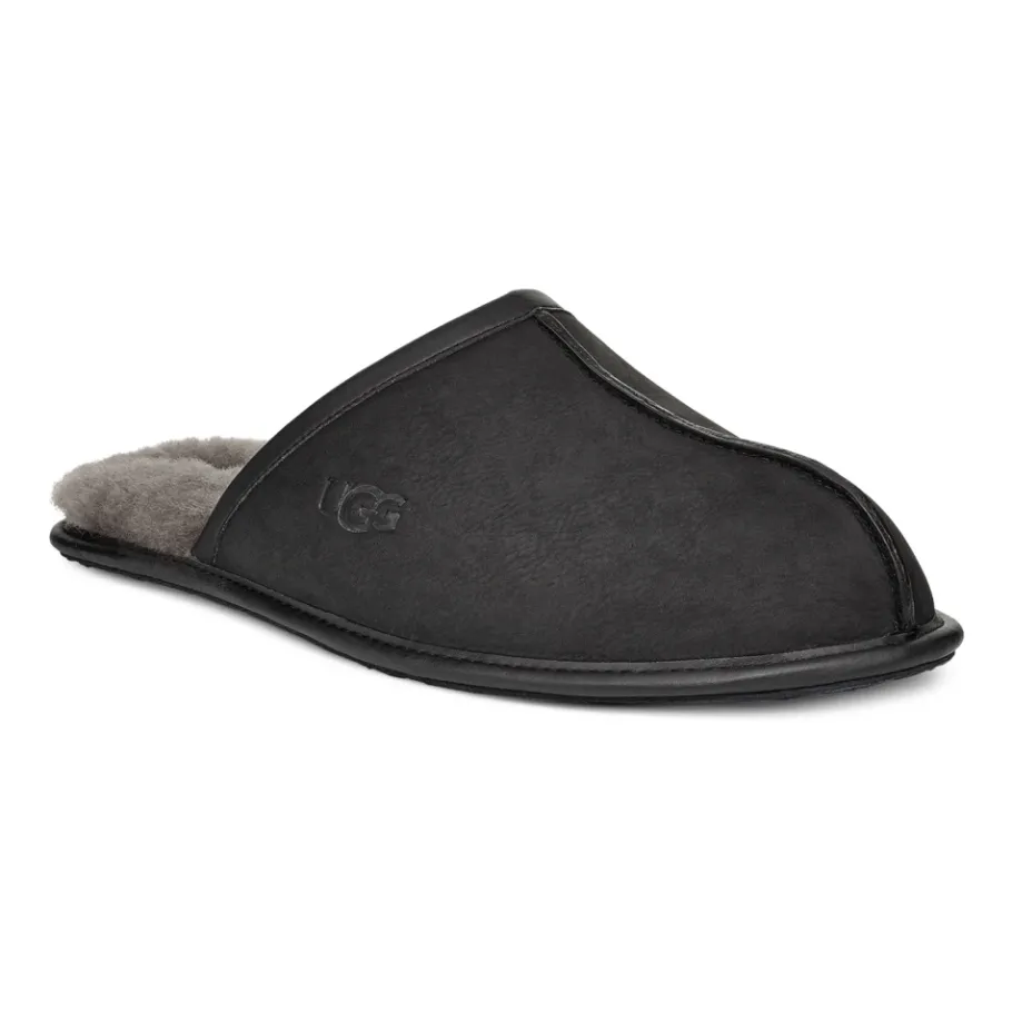 Ervaar ongeëvenaard comfort met deze zwarte Scuff slippers, ontworpen voor ontspanning binnenshuis. De luxueuze materialen en het doordachte ontwerp maken ze tot de perfecte keuze om thuis te ontspannen. Belangrijkste kenmerken: Black | Volnerfleer | Superzachte UGGplush voering | Geweven logo label op de binnenzool | Hittegeëtst logo op de zijkant | Afmetingen en pasvorm: Regular fit | Samenstelling en onderhoud: Alleen vlekken verwijderen.UGG`s zitten in het begin soms strak, maar de voering kan uitrekken naarmate u ze vaker draagt. We raden u aan uw gebruikelijke maat te kiezen.