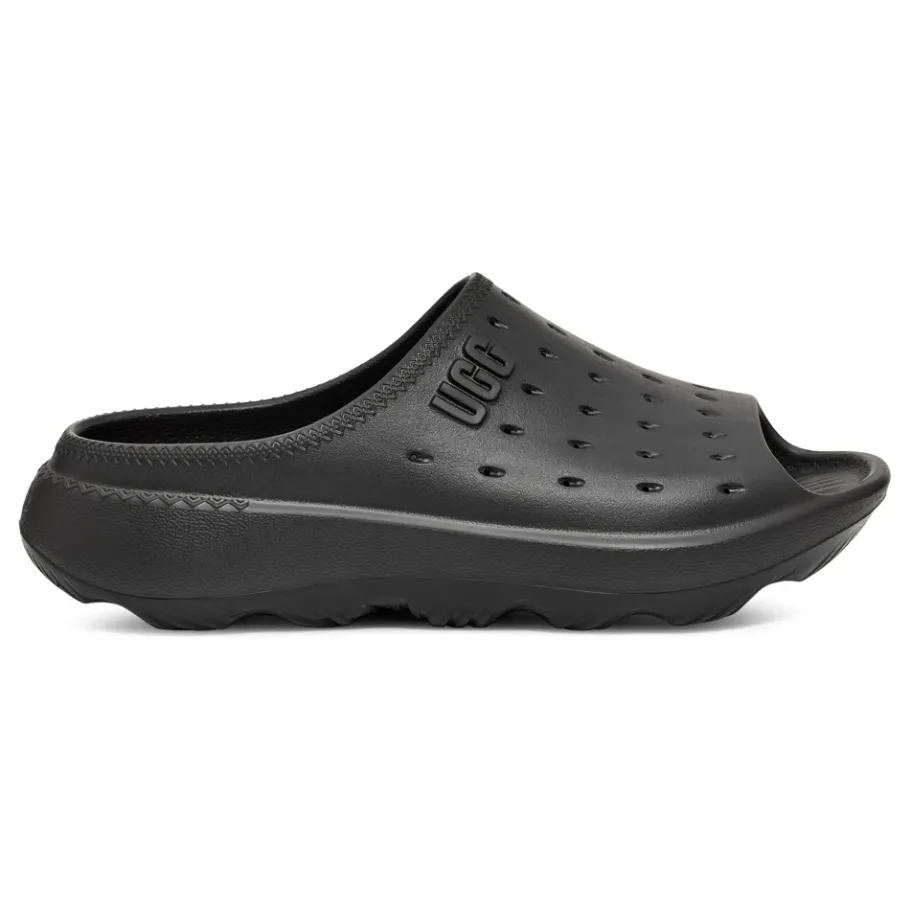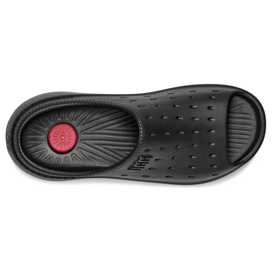 UGG Slide It is een voorgevormde slipper ontworpen voor gemakkelijk aan- en uittrekken en comfort bij warm weer. Hij valt op door zijn schuimrubberen voetbed met dubbele dichtheid dat zorgt voor demping voor de hele dag door casual gebruik. Belangrijkste kenmerken: Zwart | EVA | Schuimrubberen demping met dubbele dichtheid | Lichtgewicht gegoten zool | Ademende perforaties | Instapmodel | Open teen | Voorgevormd voetbed | Brede band | Geperforeerde wreef | Logo in reliëf