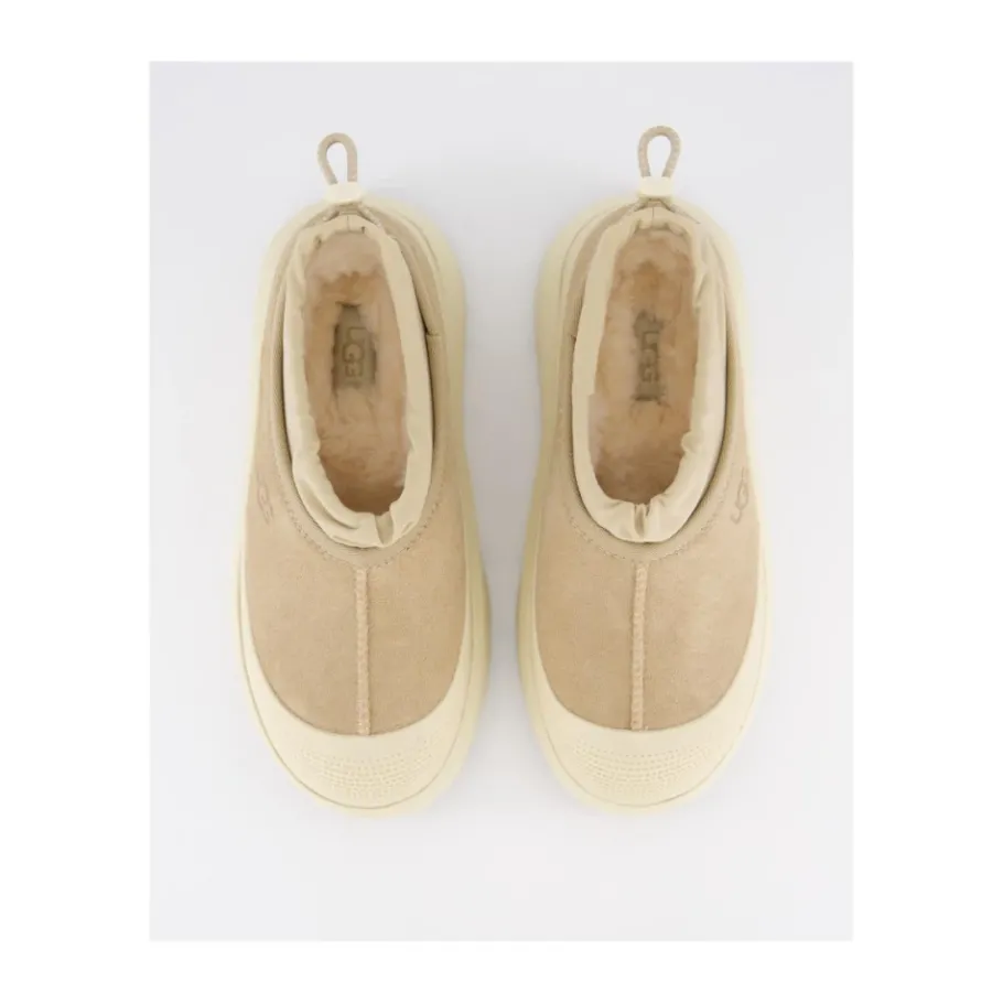Blijf warm en stijlvol in deze beige en crème UGG Tasman Weather Hybrid winterlaarzen voor mannen. Gemaakt van waterdicht suède met naadverzegelde constructie, deze schoenen hebben een gemakkelijke instapsilhouet, 17mm UGGplush™ gerecyclede wollen voering en een Sugarcane EVA buitenzool met Spider Rubber® Pods voor grip. De elastische veters en toggle maken ze gemakkelijk te dragen, terwijl het hitte-geëmbosseerde UGG-logo een vleugje stijl toevoegt. Met een permanente schuimgalosh en beoordeeld voor koud weer tot -20 graden Celsius, zijn deze laarzen perfect voor de winter..UGG`s zitten in het begin soms strak, maar de voering kan uitrekken naarmate u ze vaker draagt. We raden u aan uw gebruikelijke maat te kiezen..Dit model valt klein uit, maar de voering rekt uit tijdens het dragen. Als u tussen twee maten in zit, raden wij aan een maat groter te nemen.