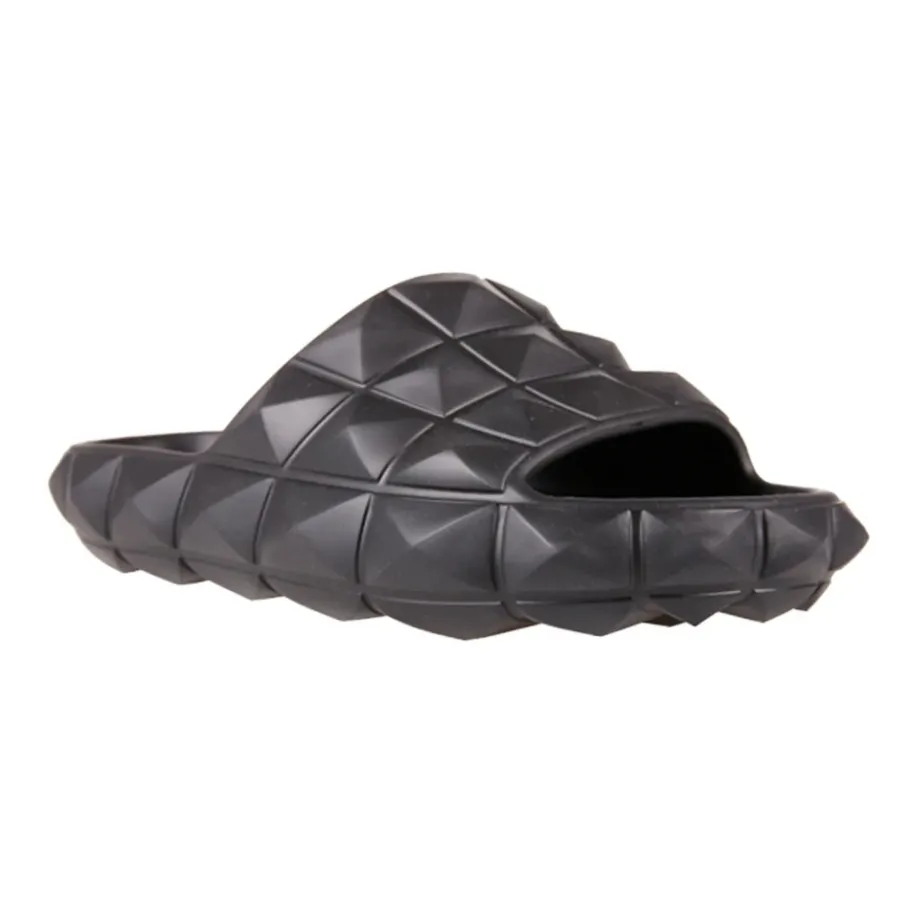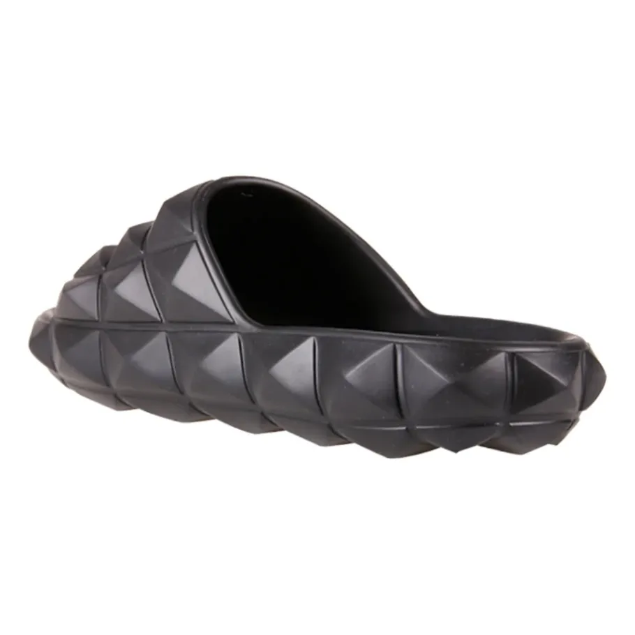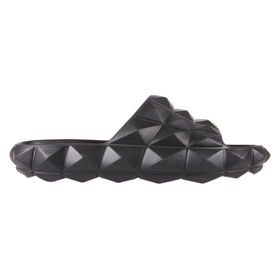 Stap in luxe met deze Valentino Garavani Bedford Slippers. Gemaakt van 100% rubber, deze zwarte slippers hebben een ronde neus en een merkzool voor ultiem comfort. Perfect voor stijlvolle mannen die vakmanschap van hoge kwaliteit waarderen. Verhoog je loungewear-spel met deze designer slippers.