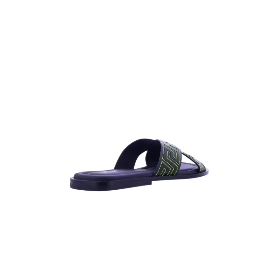 Verhoog je stijl met de Versace Greca Sandalen, met het iconische Greca-patroon voor een onderscheidende look. Belangrijkste kenmerken: Zwart | Iconisch Greca-patroon | Afmetingen en pasvorm: Bestel je gebruikelijke maat voor de perfecte pasvorm |