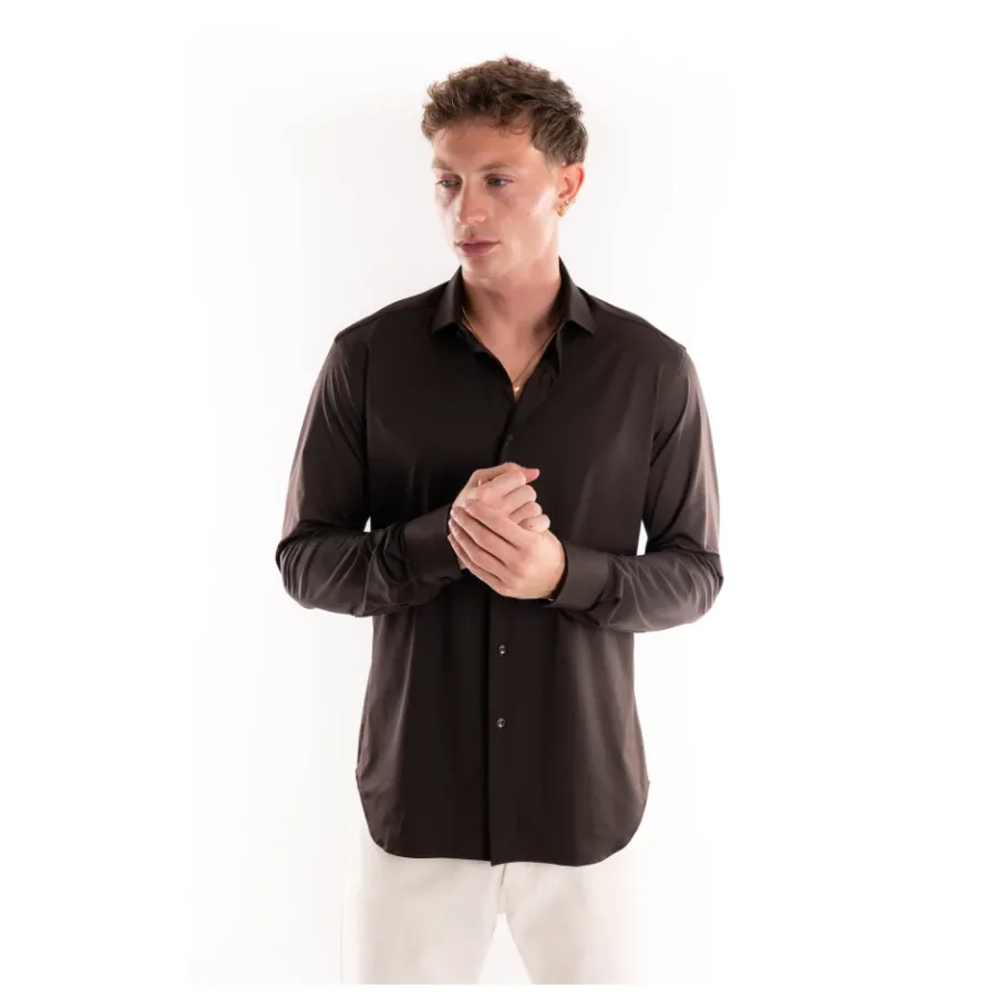 Het Xacus Active Shirt combineert formele overhemd details met ademende, 3D-stretch technische stof voor veelzijdig formeel en casual gebruik. Belangrijkste kenmerken: Bruin | Polyamide | Zeer ademend | 3D-stretch | Sneldrogend | Verbeterde mobiliteit | Comfortabel in beweging | Semi-zachte Franse kraag | Afgeronde manchetten | Geen coupenaden | Afmetingen & pasvorm: Model lengte 1.80 — draagt maat 41 | Intermediate tailor fit | Samenstelling & onderhoud: 86% polyamide | 14% elastaan
